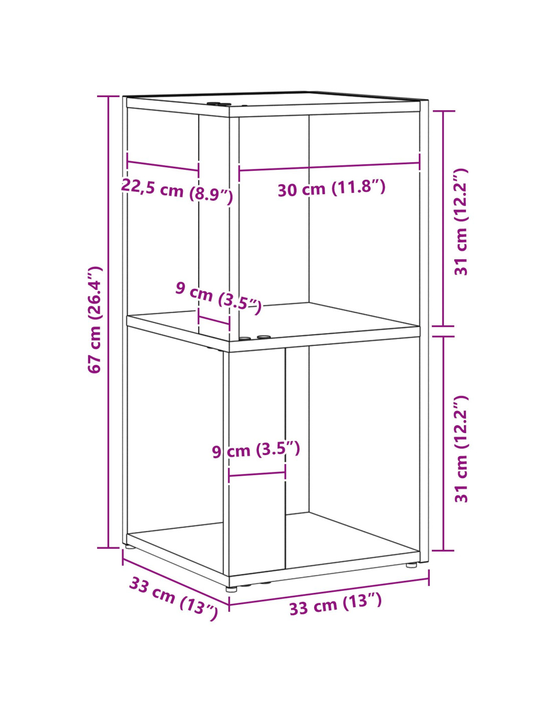 - Dimensioni complessive: 33 x 33 x 67 cm (L x P x A)
