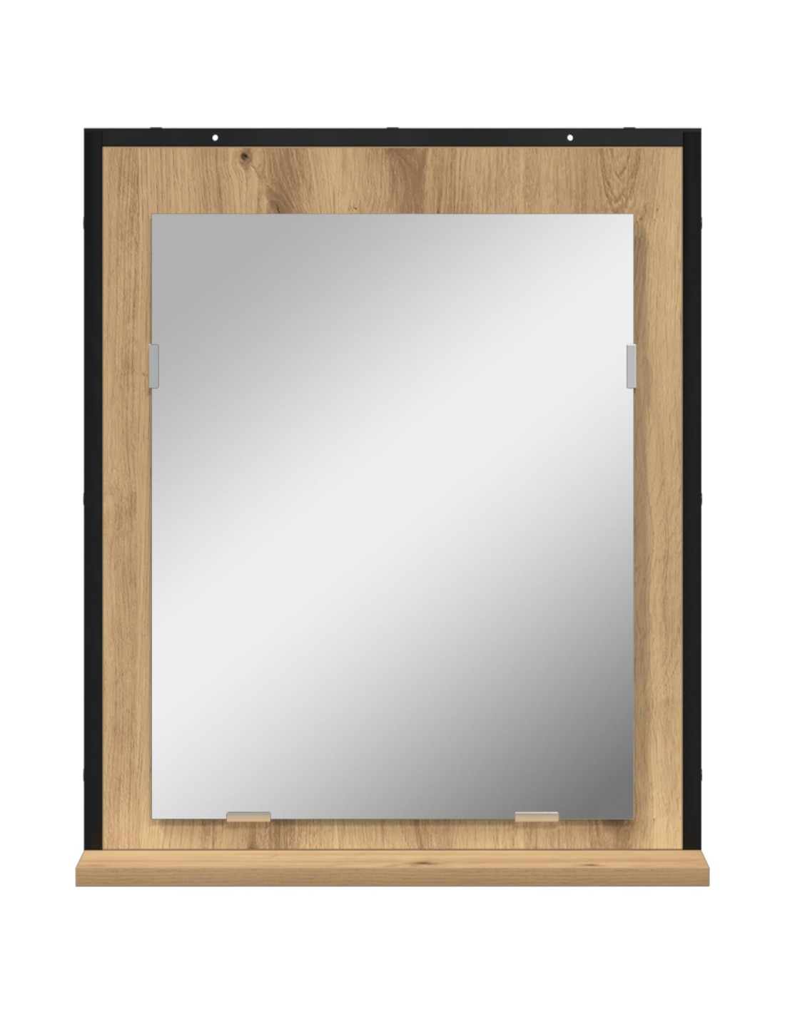 - Componenti inclusi: Lo specchio da parete viene fornito con ripiani in legno ingegnerizzato. Questi ripiani sono una soluzione pratica per tenere a portata di mano cosmetici, articoli da toeletta o decorazioni. Si abbinano perfettamente al design dello specchio, aumentando l'utilità senza sacrificare l'aspetto.