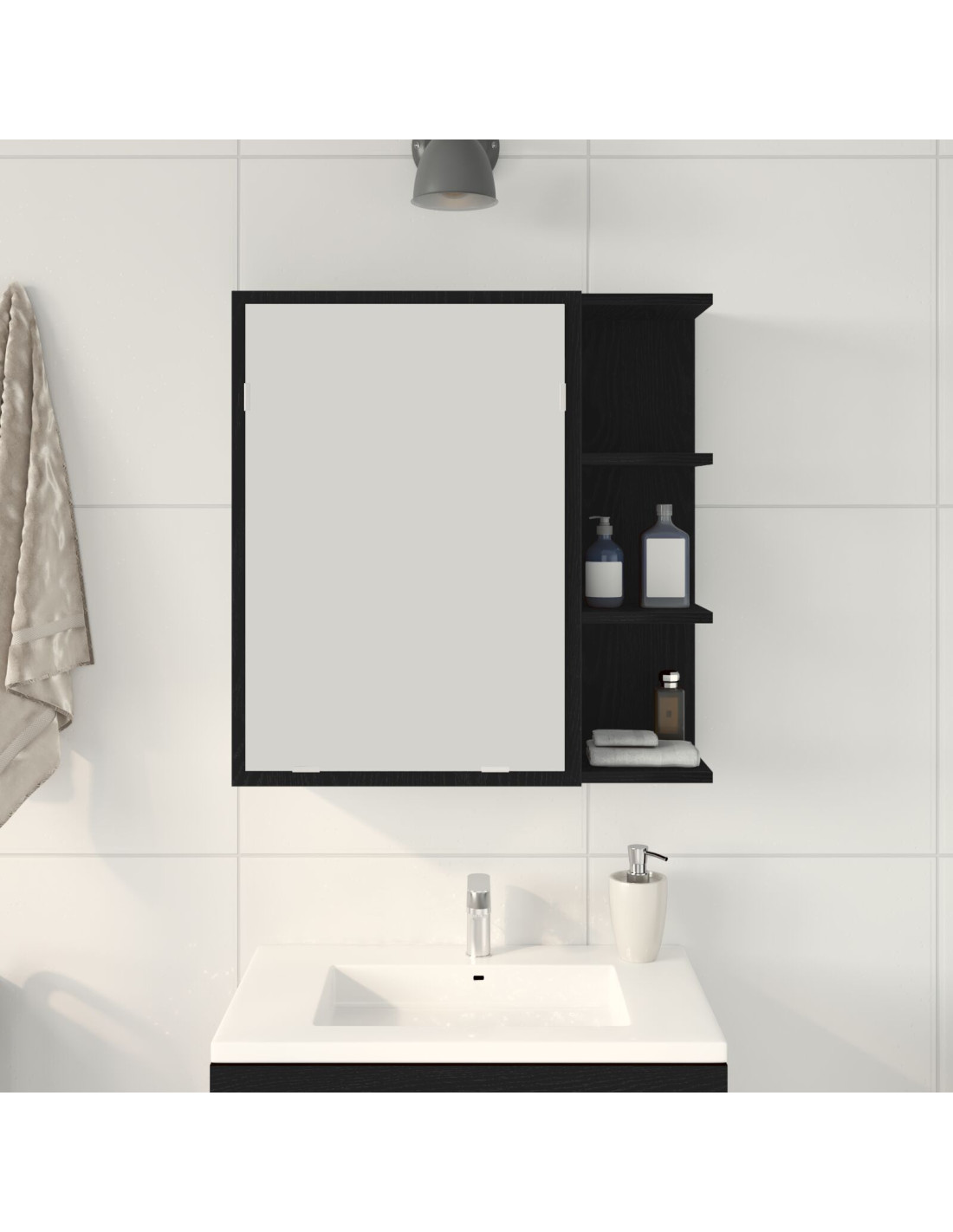 - Usi consigliati: Perfetto per l'uso interno, può essere installato in bagni o corridoi, offrendo una soluzione di stoccaggio chic e ben organizzata. Ottimo per famiglie che cercano innovazioni salvaspazio e uno stile elegante nei loro ambienti quotidiani.