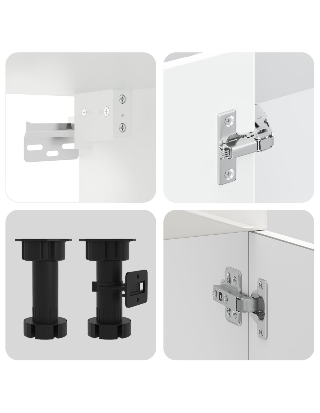 - Materiali: Fatto in legno ingegnerizzato, questo armadietto è super resistente e ha un bel design. È scelto per resistere all'uso quotidiano mantenendo un aspetto sempre in ordine.
