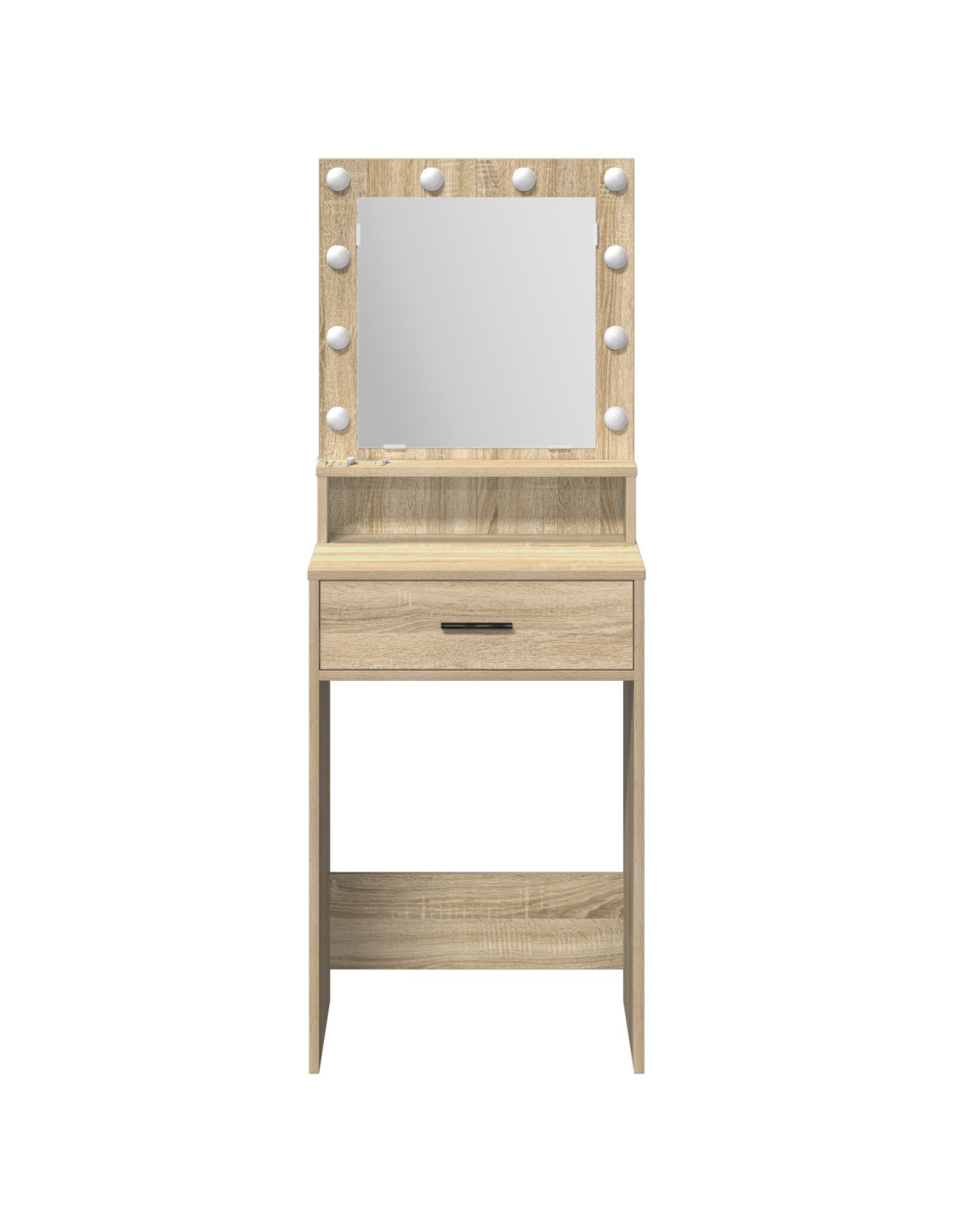 - Illuminazione Integrata: Il tavolo ha luci LED incorporate che offrono un'illuminazione brillante. Queste luci migliorano la visibilità mentre ti prepari, rendendo più facile truccarsi o controllare il tuo look con una luce chiara. L'interruttore a pulsante rende l'accensione facile e comoda per un'esperienza senza problemi.