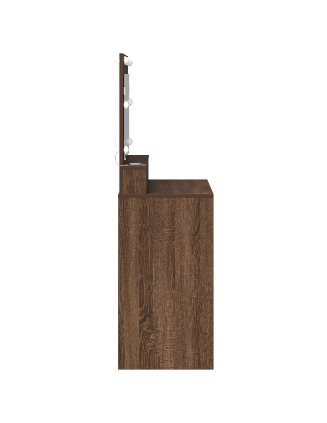 - Caratteristiche / Funzione / Design: Il design intelligente del tavolo da trucco prevede luci LED integrate nello specchio, per una migliore visibilità durante le sessioni di cura. L'illuminazione alimentata a USB con interruttore facilita il controllo, rendendo l'esperienza più piacevole e regolabile, mantenendo anche un occhio sull'efficienza energetica.