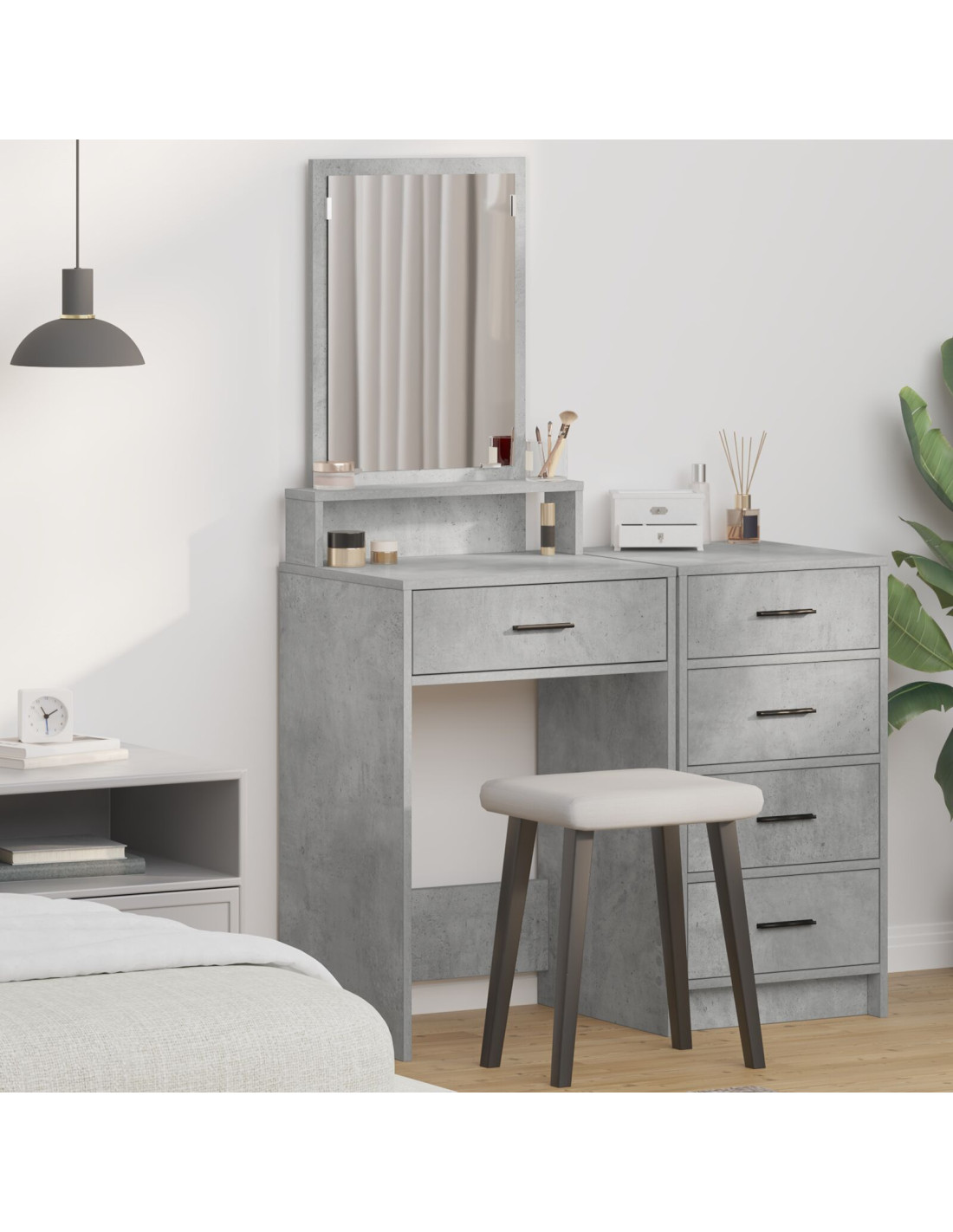 Questo tavolo da trucco moderno è un'aggiunta elegante e funzionale a qualsiasi stanza. Con la sua forma rettangolare snella, combina stile contemporaneo e praticità. Unisce praticità e bellezza estetica, risultando il centro ideale. Crea un'atmosfera tranquilla per la cura personale, con superfici in legno ingegnerizzato e una finitura liscia. Lo specchio e i vari cassetti soddisfano le tue esigenze di stoccaggio, mantenendo tutto ordinato e bello.