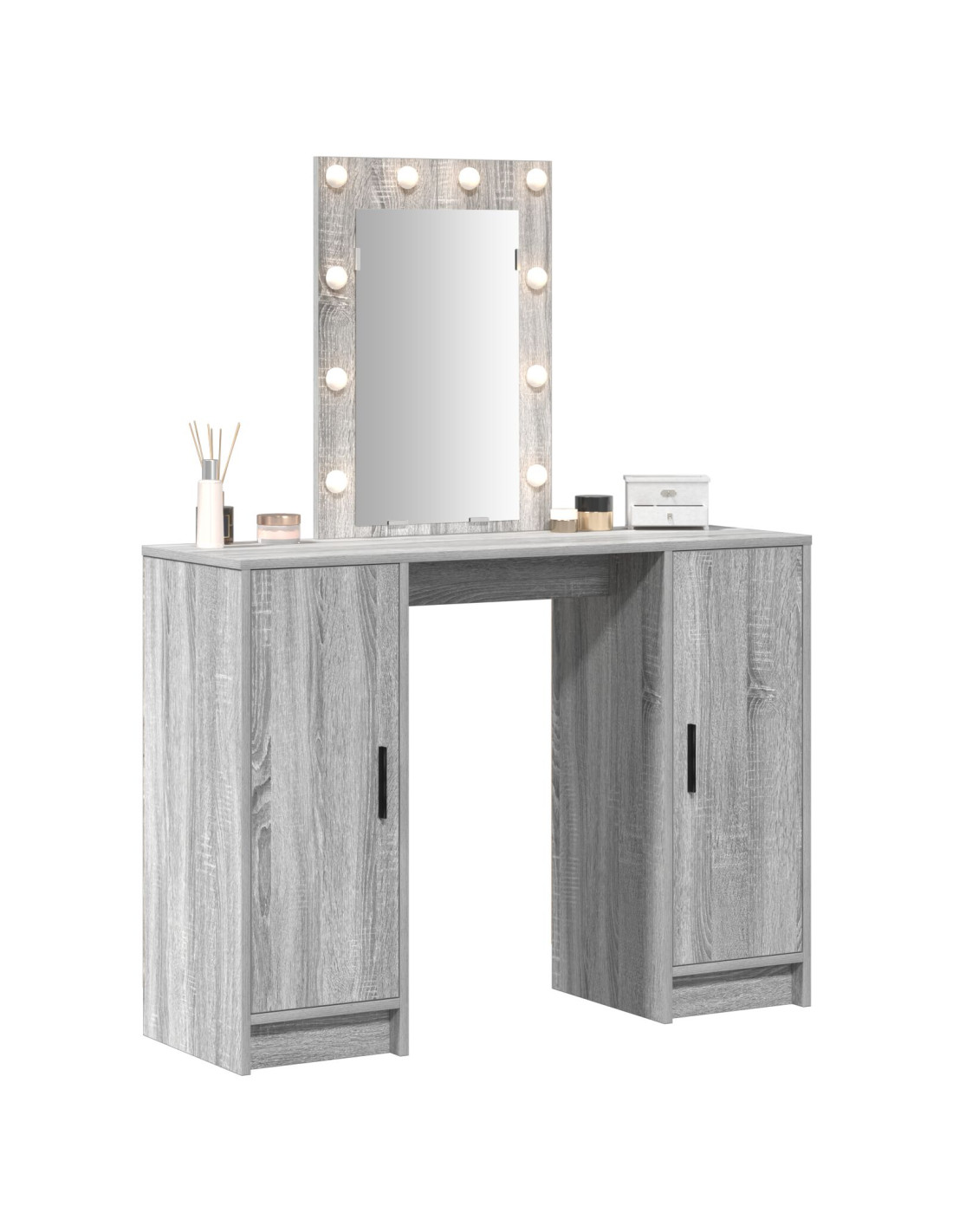 - Stile moderno: Questo tavolo da trucco incarna il minimalismo del design moderno con porte a filo e maniglie, rappresentando l'essenza dello stile contemporaneo.