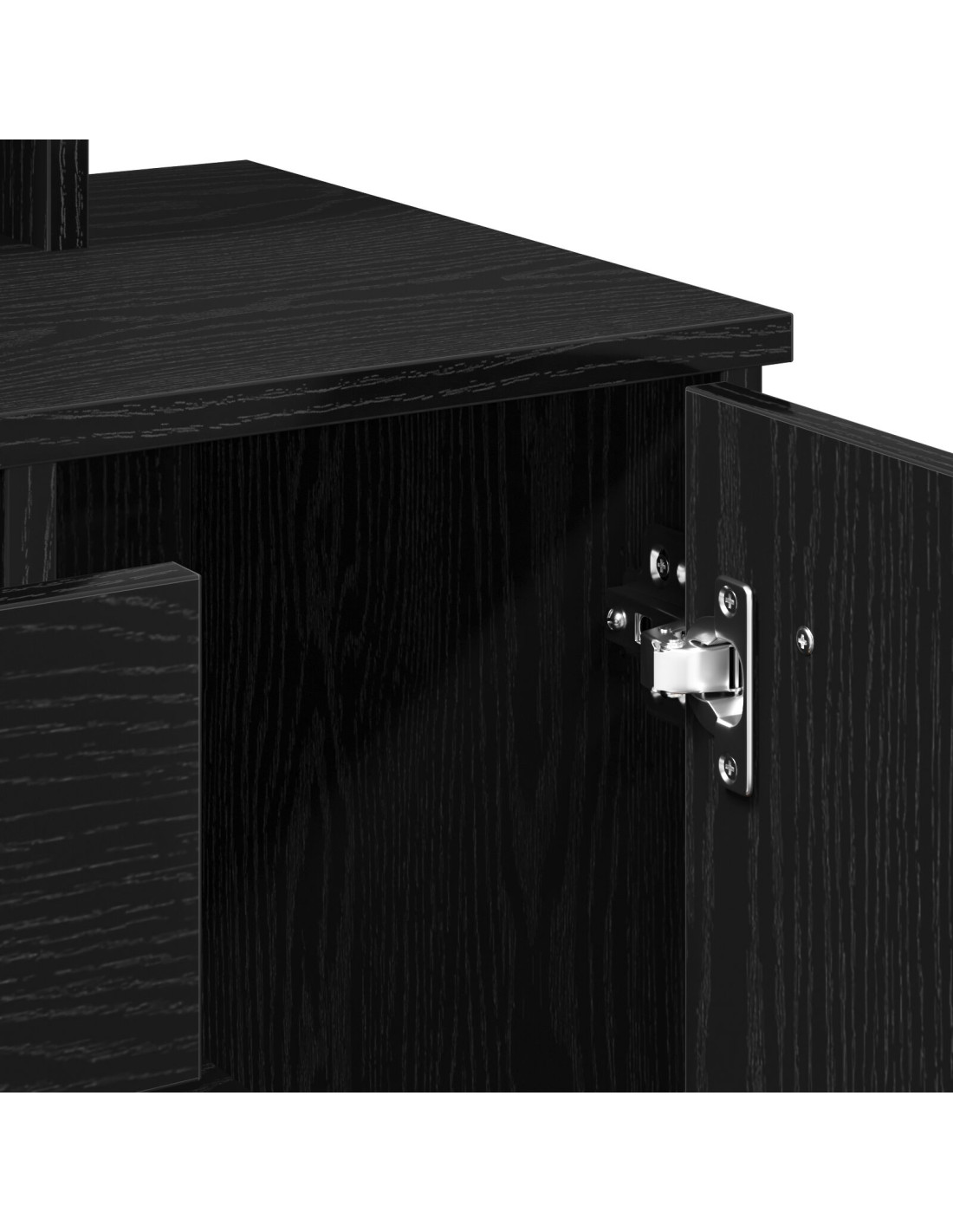 - Componenti Progettati con Cura: Questa toilette include uno specchio piatto, ideale per la cura personale. Con sette ripiani in legno e cassetti, offre soluzioni di archiviazione pratiche per tenere tutto in ordine. Le porte a cerniera facilitano l'accesso, rendendo le attività quotidiane più semplici.