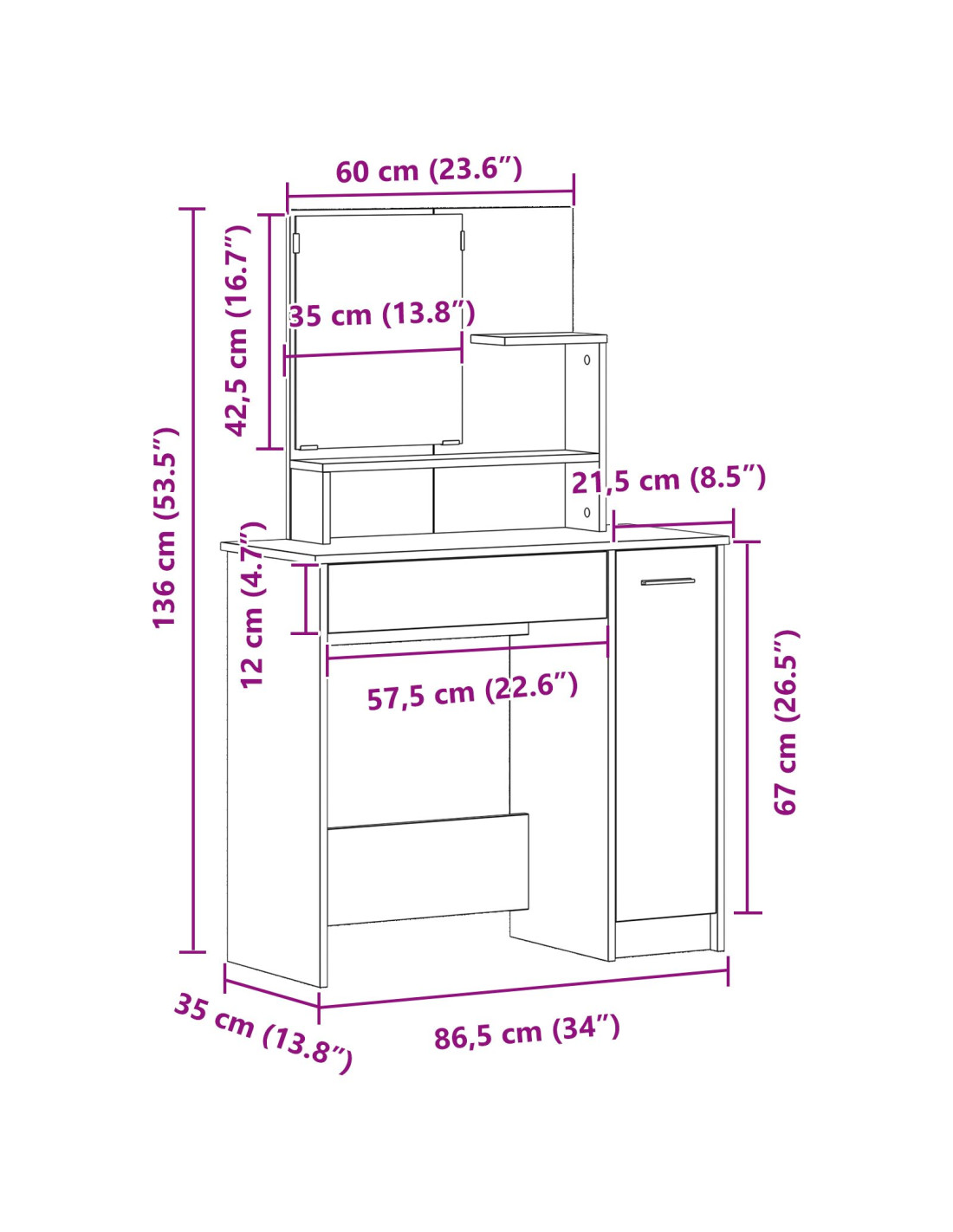 - Capacità Funzionale Ampia: Con misure di 86,5 cm per 35 cm e un'altezza di 136 cm, offre molto spazio senza occupare troppo. È progettata per soddisfare le esigenze moderne, supportando routine di bellezza e organizzazione personale, il tutto con stile.