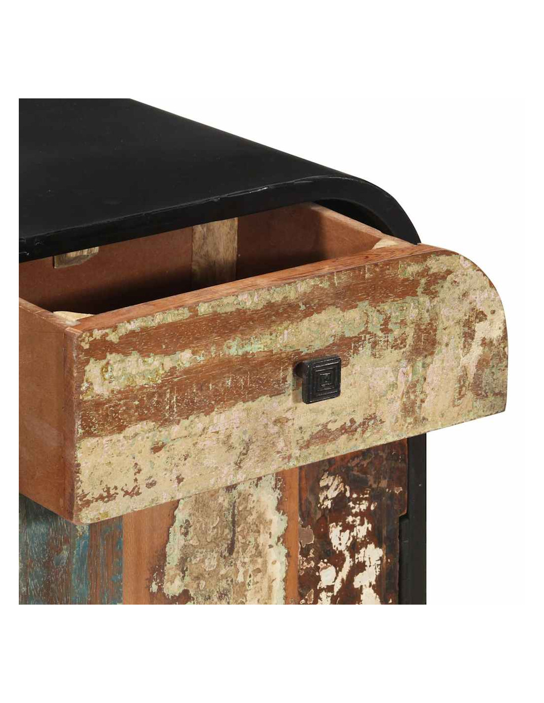 Questa credenza in stile antico e in legno di recupero, con 4 cassetti e 4 scomparti, offre ampio spazio per conservare gli oggetti e vi aiuta a tenerli in ordine.