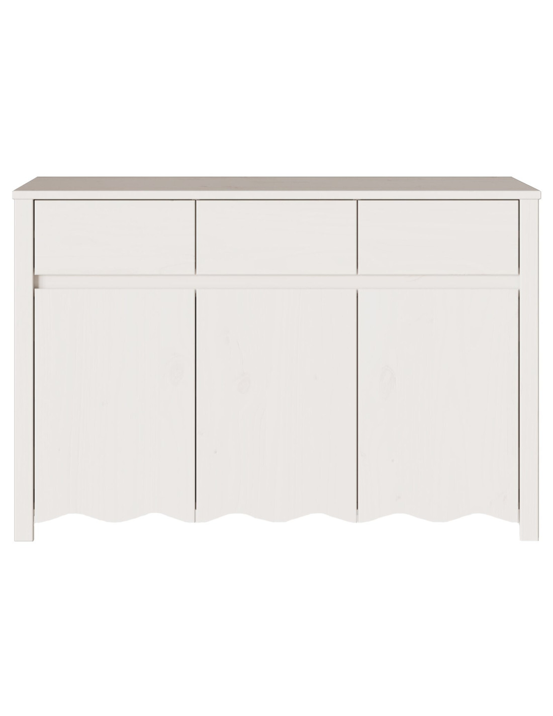 Questa credenza rappresenta una soluzione di stoccaggio flessibile per interni, pensata per rendere gli spazi moderni ancora più belli. Fatta in legno massello di pino, unisce semplicità e funzionalità, con linee pulite che si adattano a vari stili d'arredo. La sua forma rettangolare regala un look semplice e raffinato, perfetto sia per la sala da pranzo che per il soggiorno, e offre tanto spazio per tenere tutto in ordine o esporre qualche decorazione.