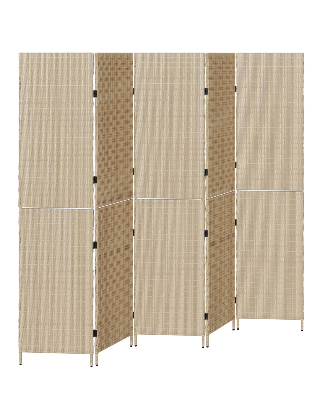 - Struttura in polyrattan: Questo divisorio è realizzato in polyrattan resistente, creando un look facilmente accattivante e resistente ai raggi UV. È la soluzione ideale per chi cerca durabilità senza rinunciare allo stile. Addio a problemi di usura con i materiali naturali.