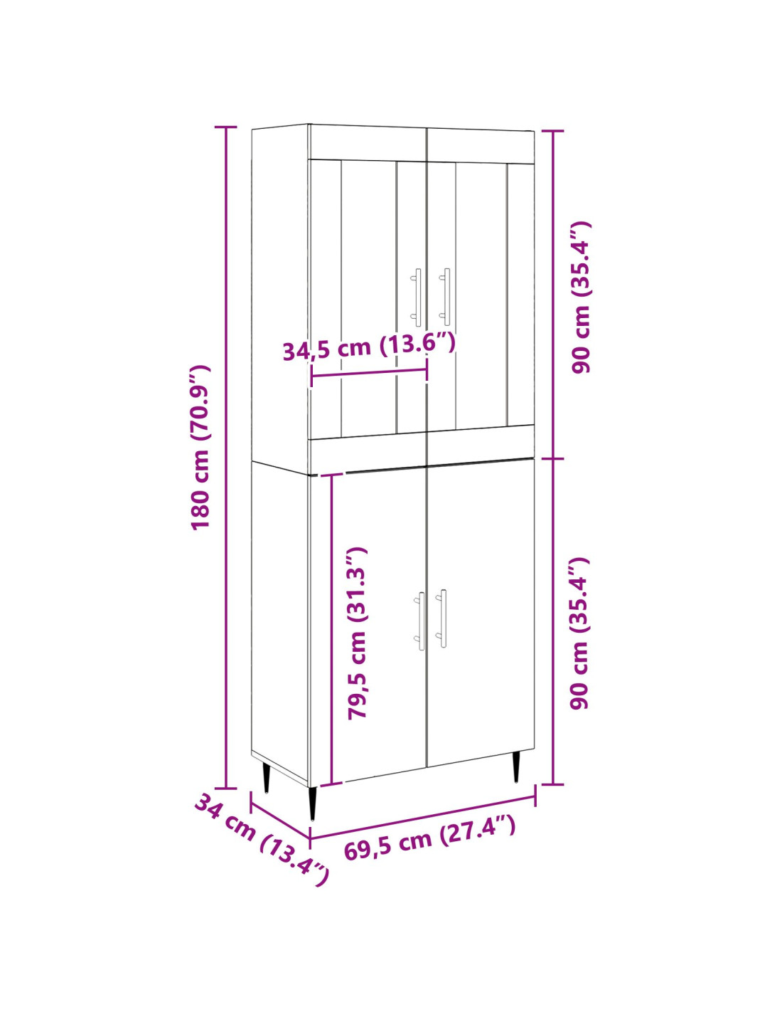 - Dimensioni complessive: 69,5 x 34 x 180 cm (L x P x A)