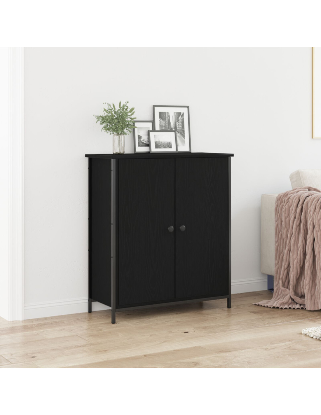 - Design moderno e pratico: Grazie al suo design semplice, questo mobile è molto versatile nel suo stile. Le linee pulite e le gambe in acciaio nero conferiscono un aspetto contemporaneo che si adatta a tanti stili decorativi.