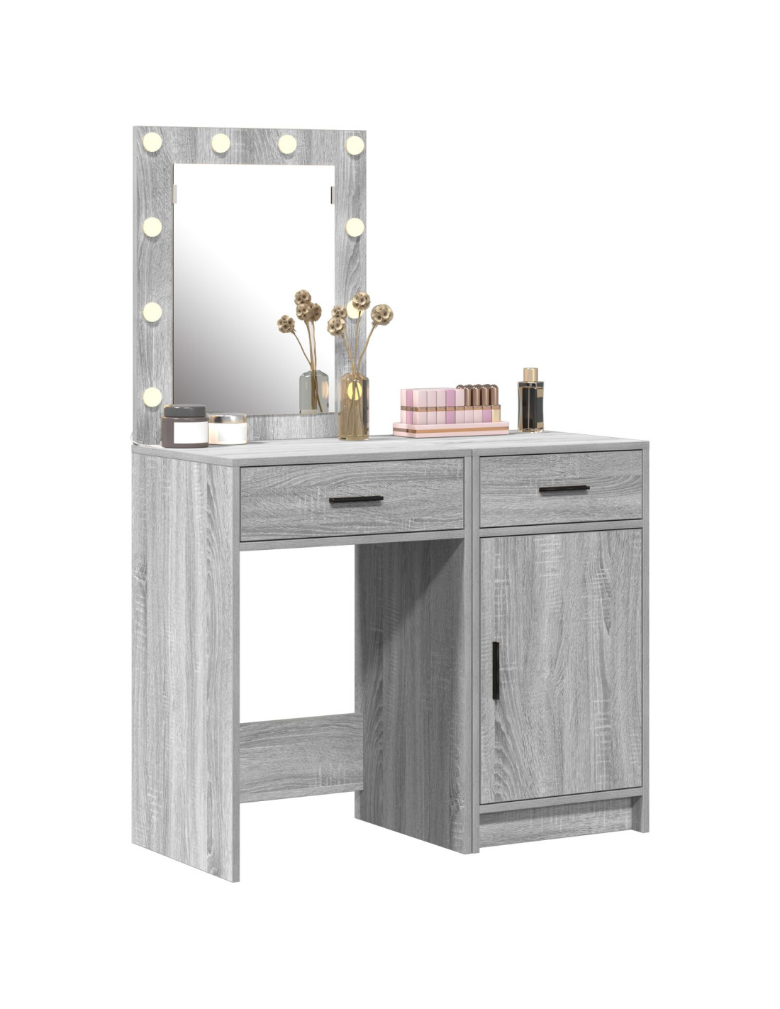 Questo tavolo da trucco moderno è un'aggiunta fantastica a qualsiasi camera da letto, che mescola stile e funzionalità. La sua forma rettangolare e le linee pulite esprimono il design moderno, rendendolo perfetto per stanze minimaliste o contemporanee. Realizzato in legno ingegnerizzato, ha un aspetto lucido e offre tanto spazio per riporre le tue cose. Le luci a striscia LED non sono solo per l'estetica; rendono le tue routine del mattino e della sera super semplici.