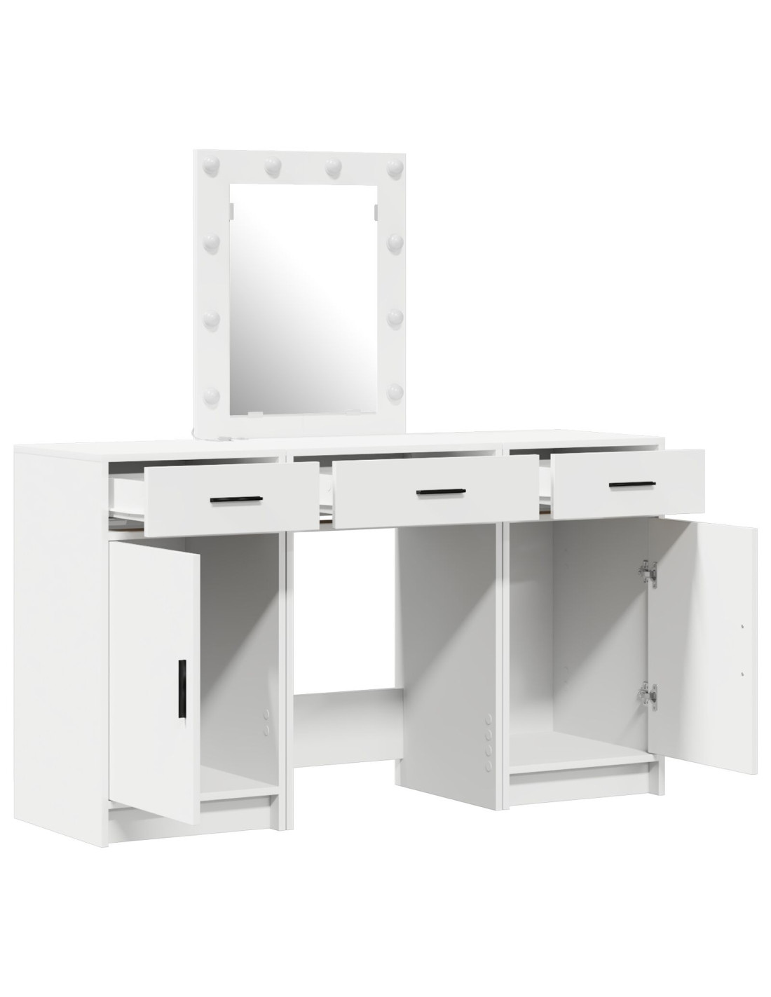 - Struttura in legno ingegnerizzato Realizzato con legno ingegnerizzato di qualità, questo tavolo da trucco moderno è robusto e duraturo. La costante qualità del materiale garantisce un utilizzo prolungato e resistenza, per un look elegante che si adatta a ogni ambiente.