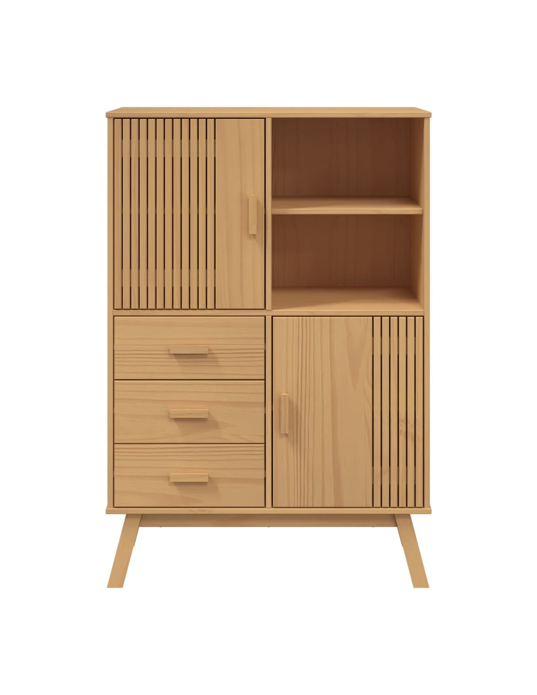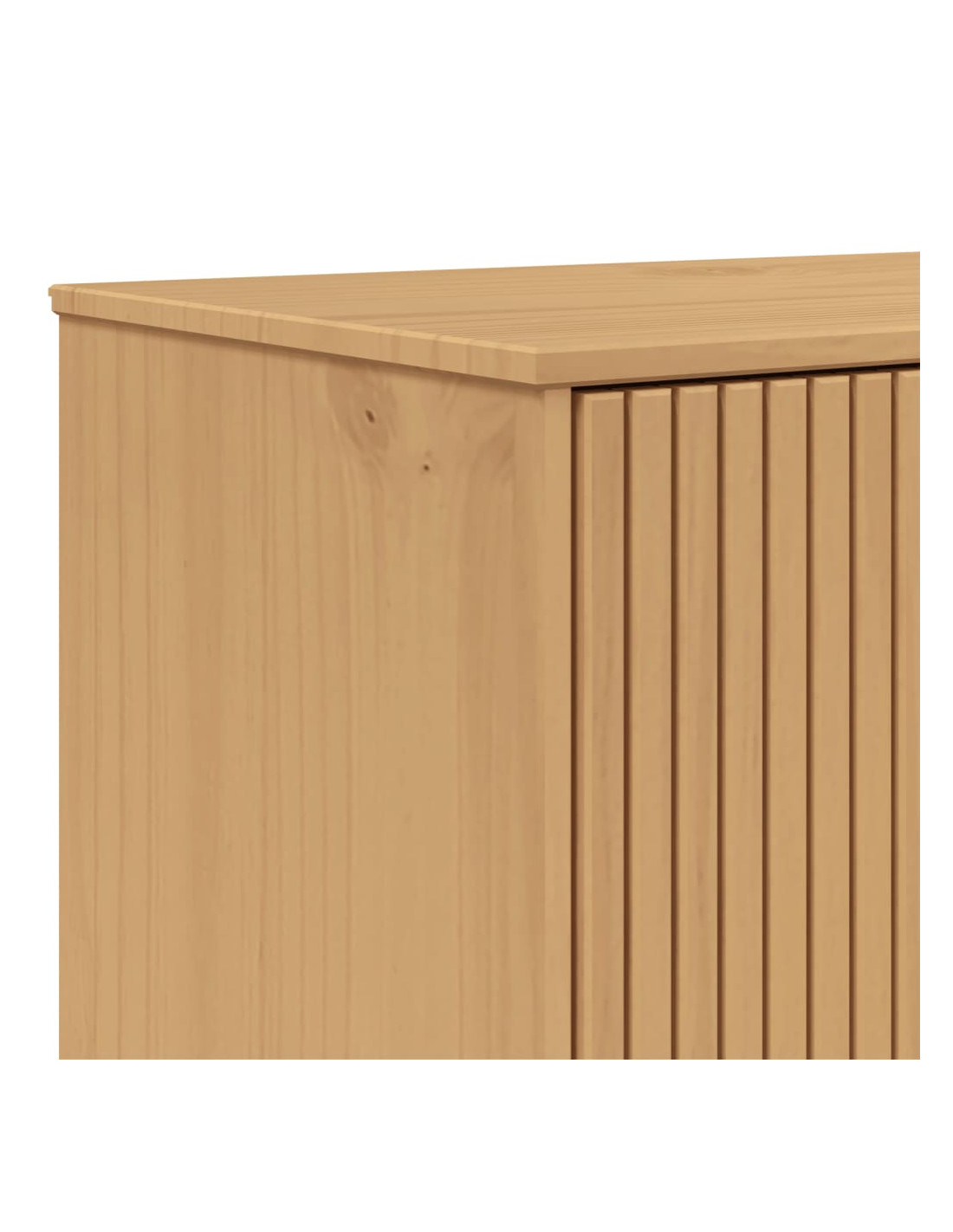 - Legno massello di pino: Il legno massello di pino è un bellissimo materiale naturale. Il legno di pino ha le venature dritte, e i nodi conferiscono al materiale il suo caratteristico aspetto rustico. Realizzata in legno massello di pino, la credenza è robusta e stabile.