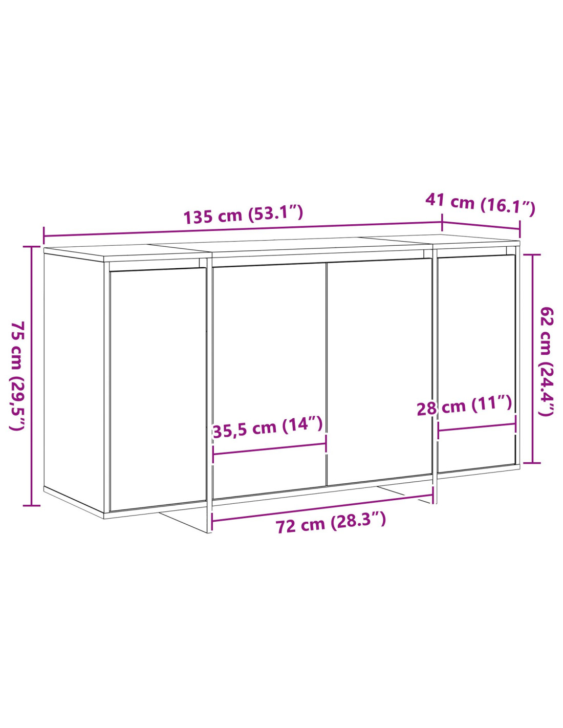 - Dimensioni complessive: 135 x 41 x 75 cm (L x P x A)