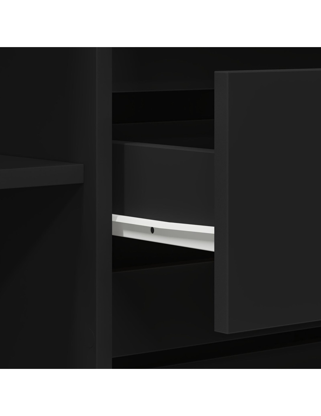 - Costruzione in legno ingegnerizzato: Questa credenza è realizzata in legno ingegnerizzato di qualità, resistente e duraturo. Questo materiale garantisce che il mobile rimanga in ottime condizioni negli anni, sopportando l'usura e fornendo una struttura solida per un uso quotidiano in famiglie numerose.