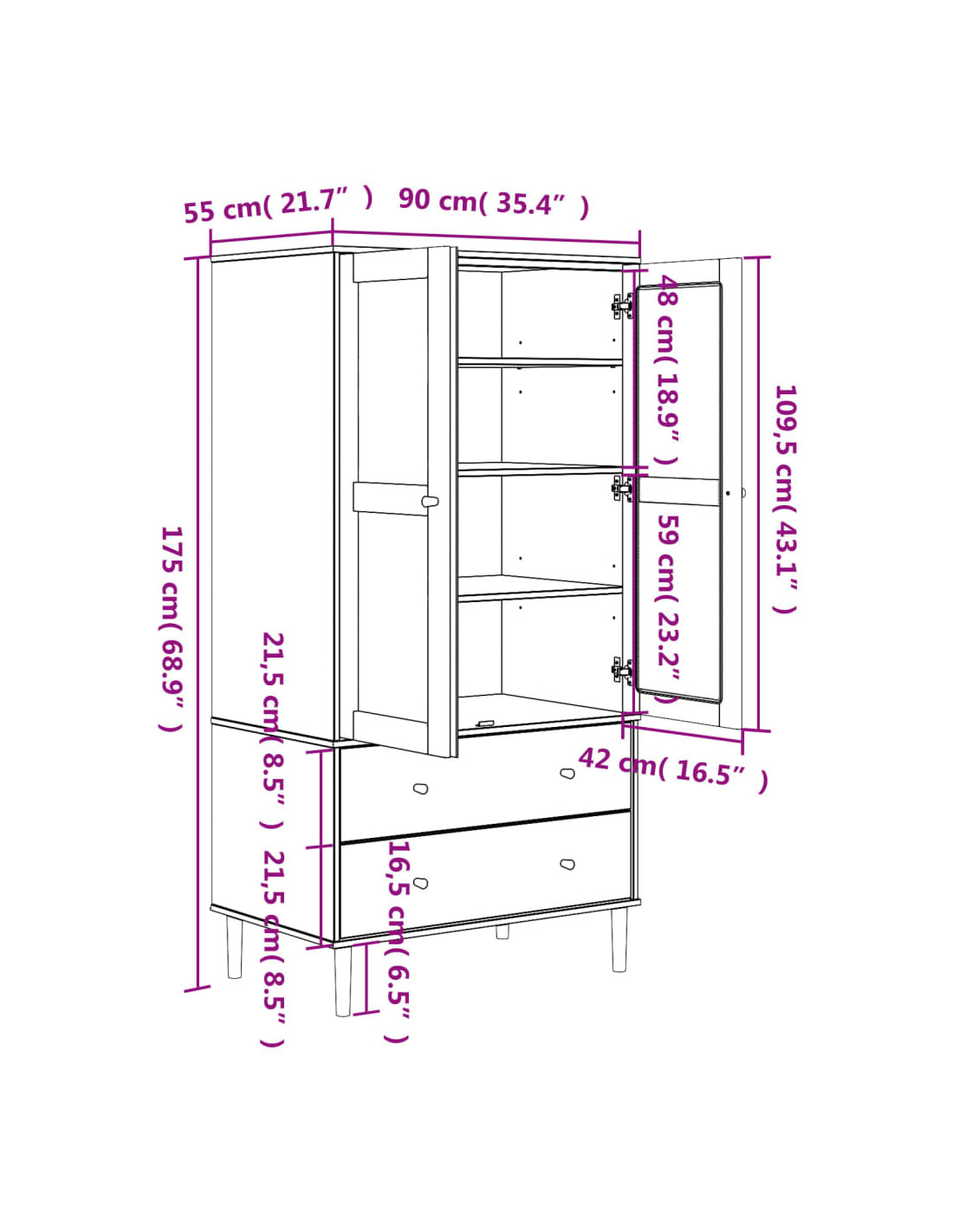 - Dimensioni: 90 x 55 x 175 cm (L x P x A)