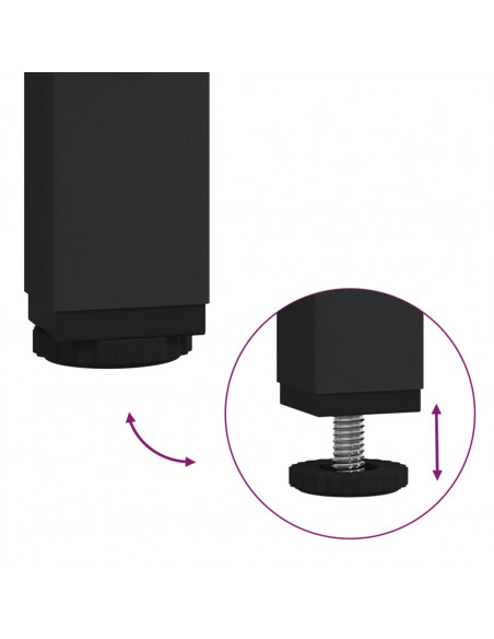 - Piedini regolabili: I piedini regolabili con i cuscinetti in plastica mantengono il mobile per la camera da letto in equilibrio su terreni irregolari e ne aumentano la stabilità.