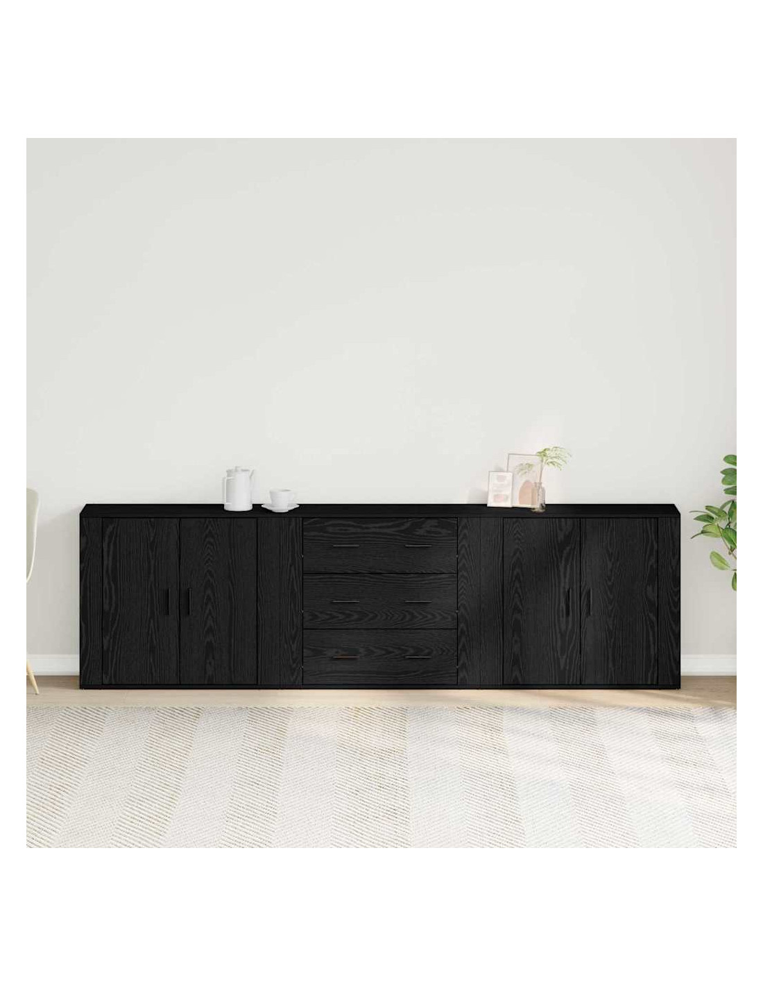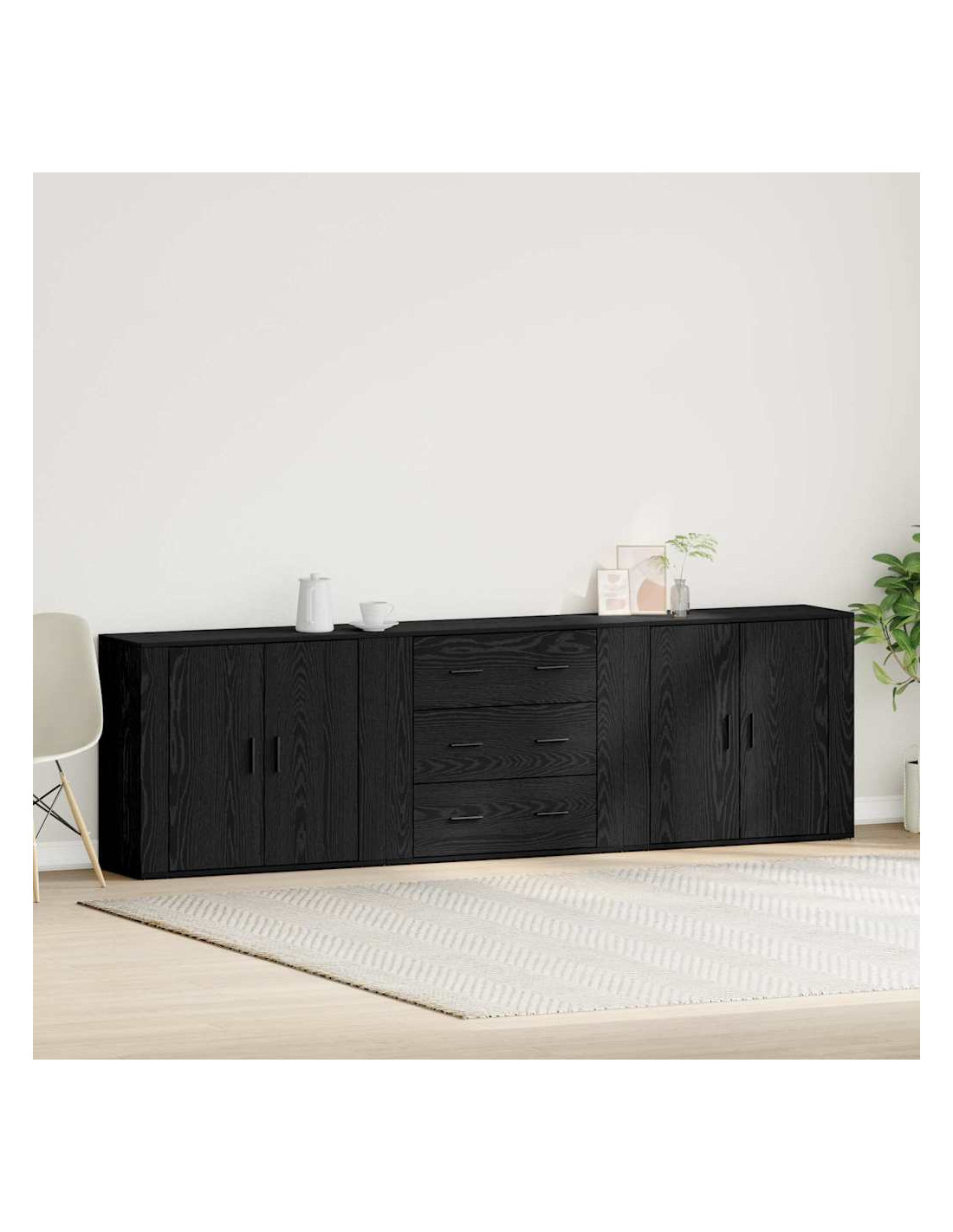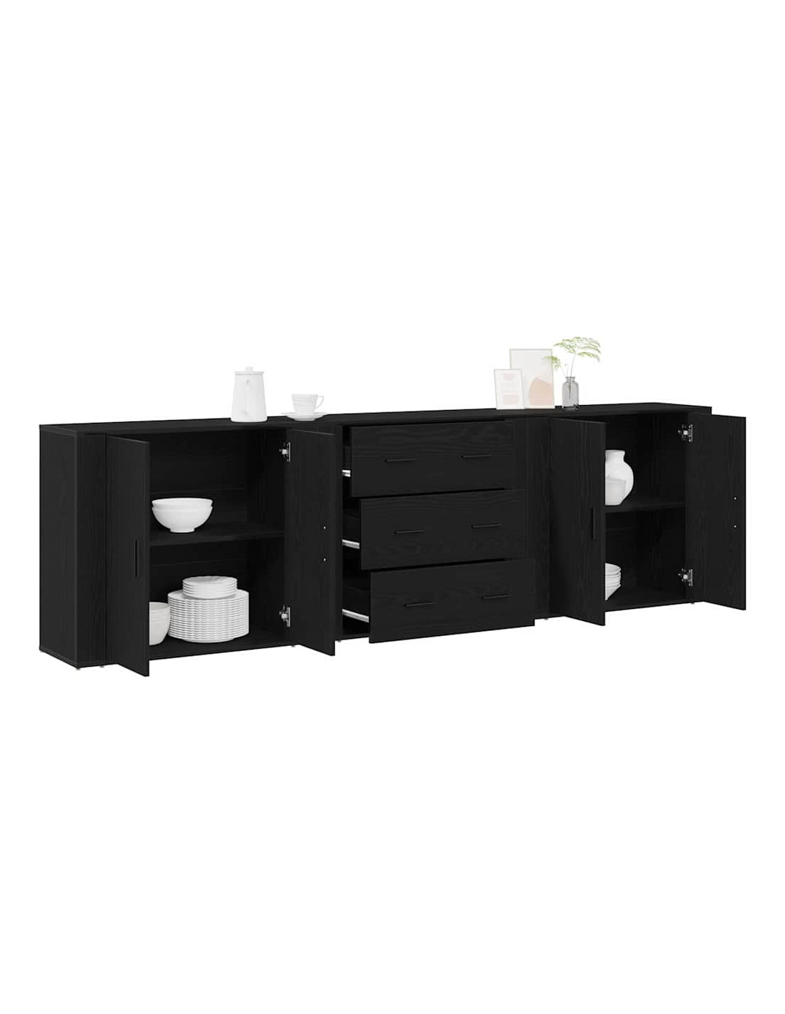 - Porte nere a cerniera Ha porte nere in legno ingegnerizzato che danno un tocco di classe. Queste porte moderne si aprono senza problemi, permettendo di tenere al sicuro i tuoi oggetti da polvere e disordine.