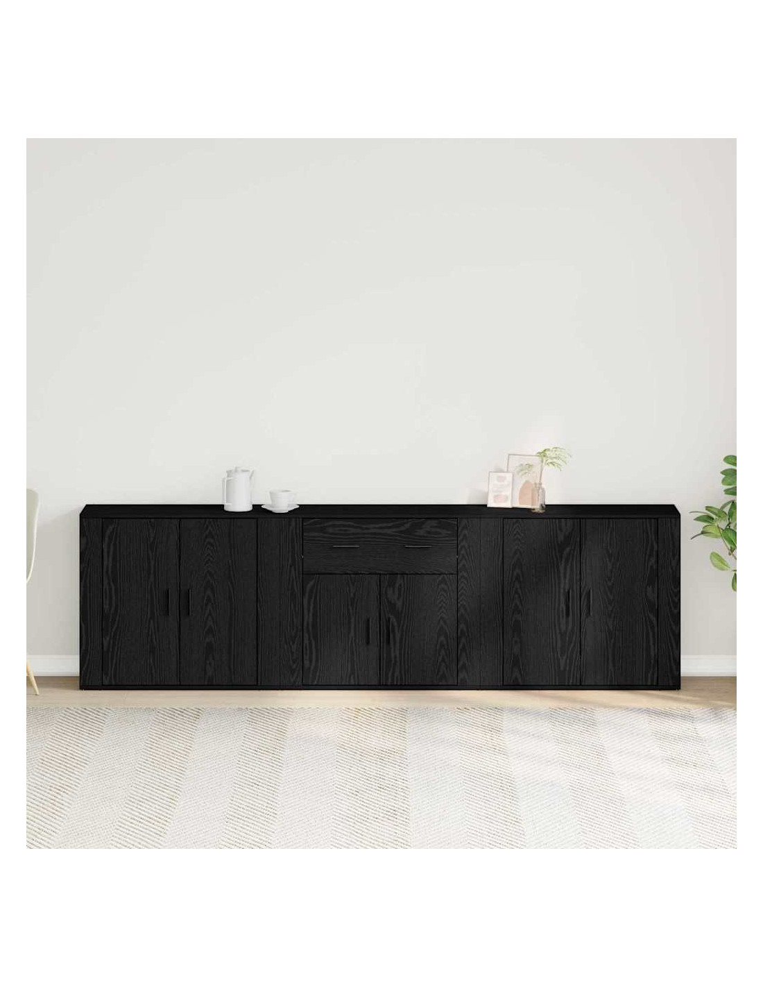 - Materiali e artigianato: Fatto in legno ingegnerizzato di qualità, questo sideboard è robusto e progettato per un uso continuo pur mantenendo un aspetto attraente. I materiali sono scelti per resistere all'usura di tutti i giorni, offrendo una soluzione di stoccaggio che combina stile e durata in un unico pezzo.