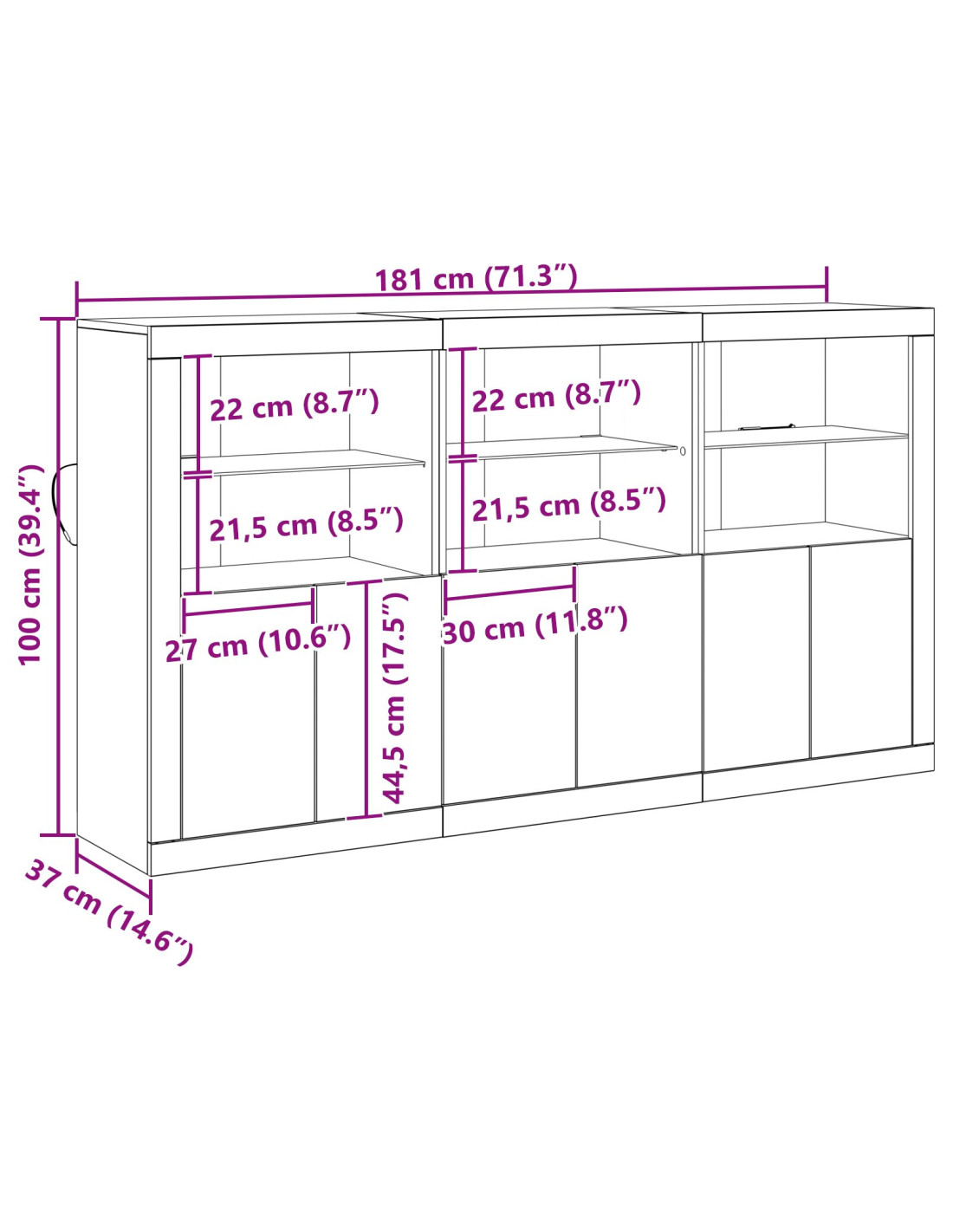 - Dimensioni complessive: 181,5 x 37 x 100 cm (L x P x A)
