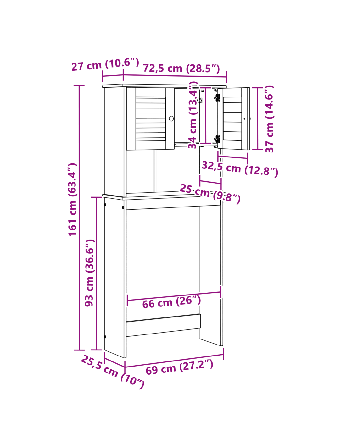 - Dimensioni complessive: 72,5 x 27 x 161 cm (L x P x A)