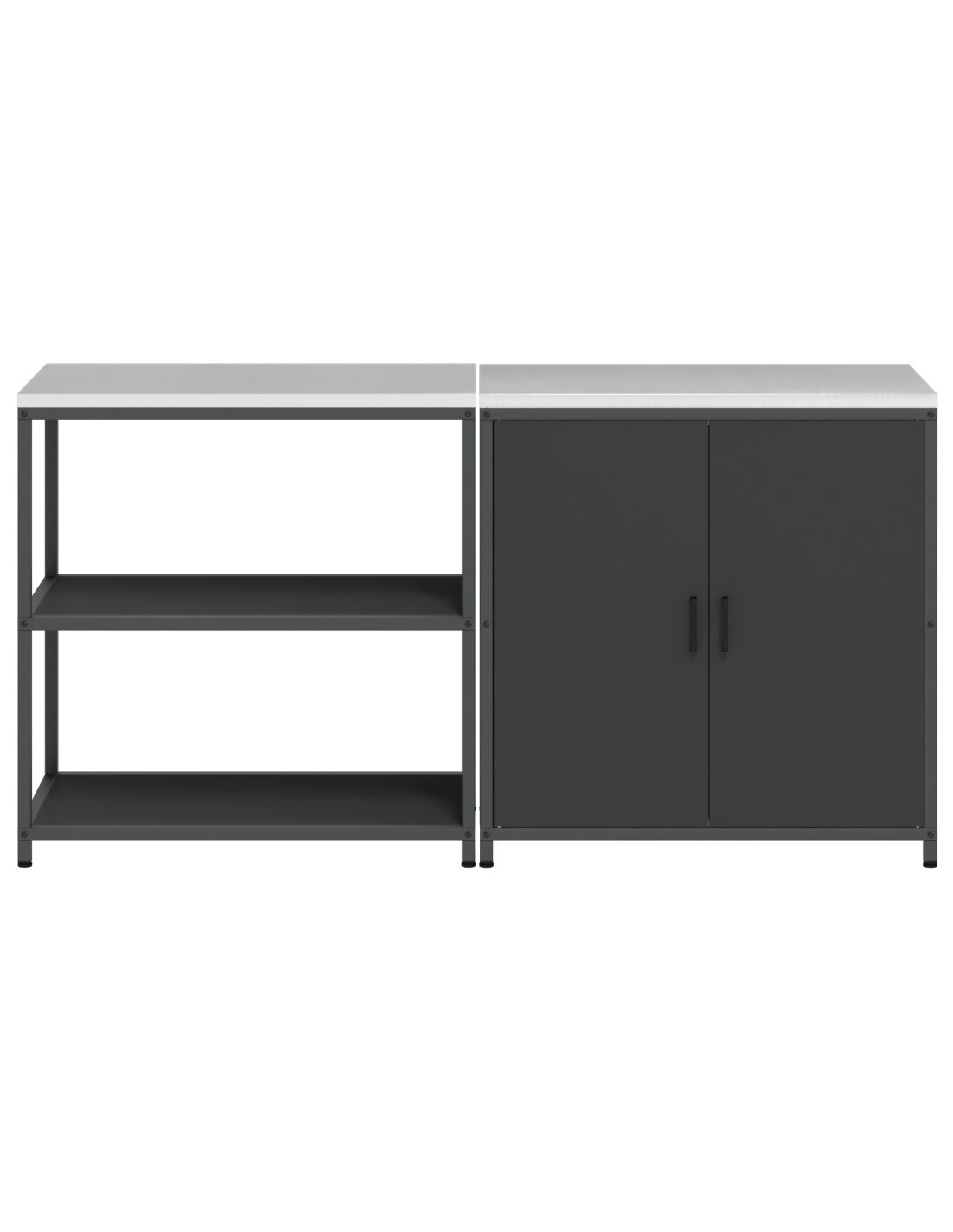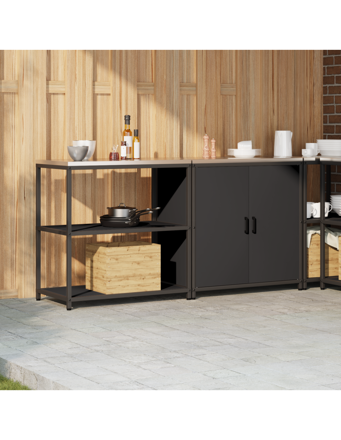 - Componenti inclusi: Ogni elemento di questa unità ha una funzione pratica. Dotata di porte e mensole in acciaio, offre longevità e un facile accesso a tutto ciò che contiene. Le maniglie e le gambe nere mantengono un aspetto armonioso, rendendola ancora più elegante. Il design rettangolare ottimizza lo spazio, rendendo la cucina più funzionale.