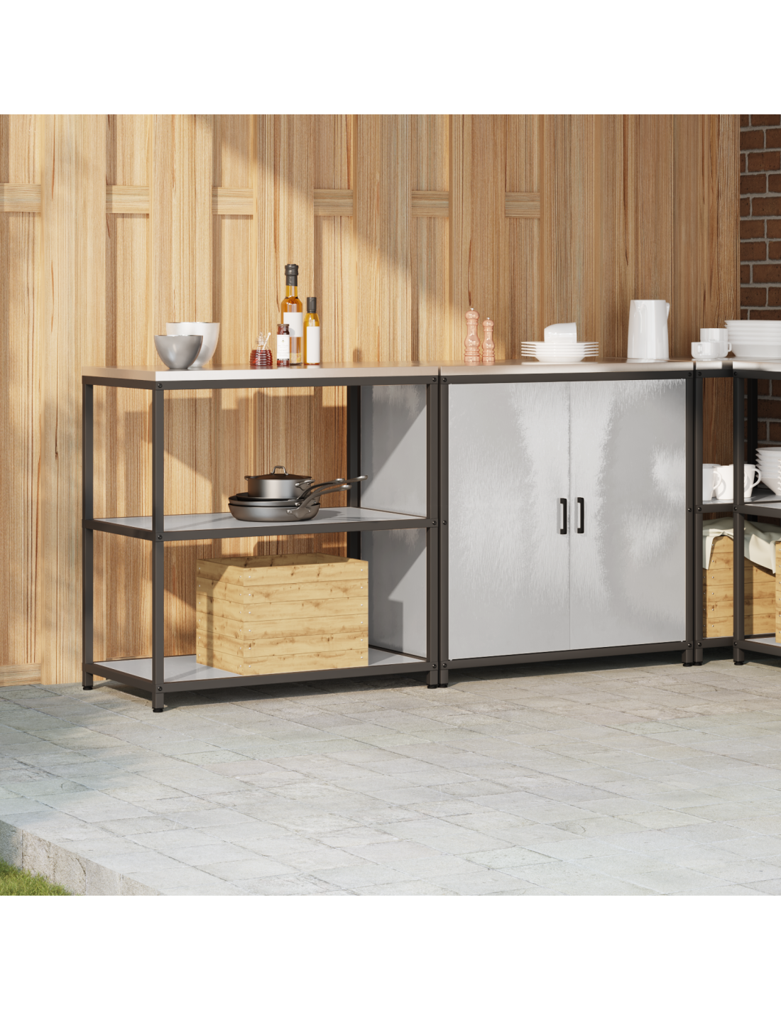 - Stoccaggio funzionale: Con scompartimenti ben organizzati, questa unità è pensata per un uso pratico. Le mensole interne permettono di sistemare cibo, utensili e altre necessità della cucina in modo conveniente. La loro regolabilità si adatta a tutte le esigenze di spazio, da pentole a piatti.