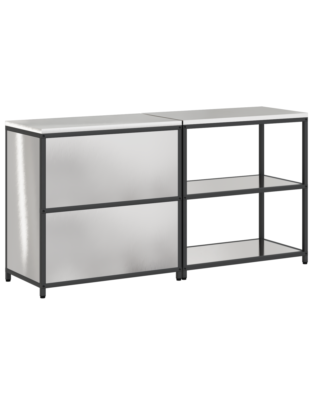 - Manutenzione: Per mantenerla in ottime condizioni, basta pulirla con un panno asciutto per rimuovere la polvere. È meglio evitare prodotti chimici aggressivi per non danneggiare la finitura. Con una buona manutenzione, questa unità in acciaio rimarrà un'ottima soluzione di stoccaggio per anni.