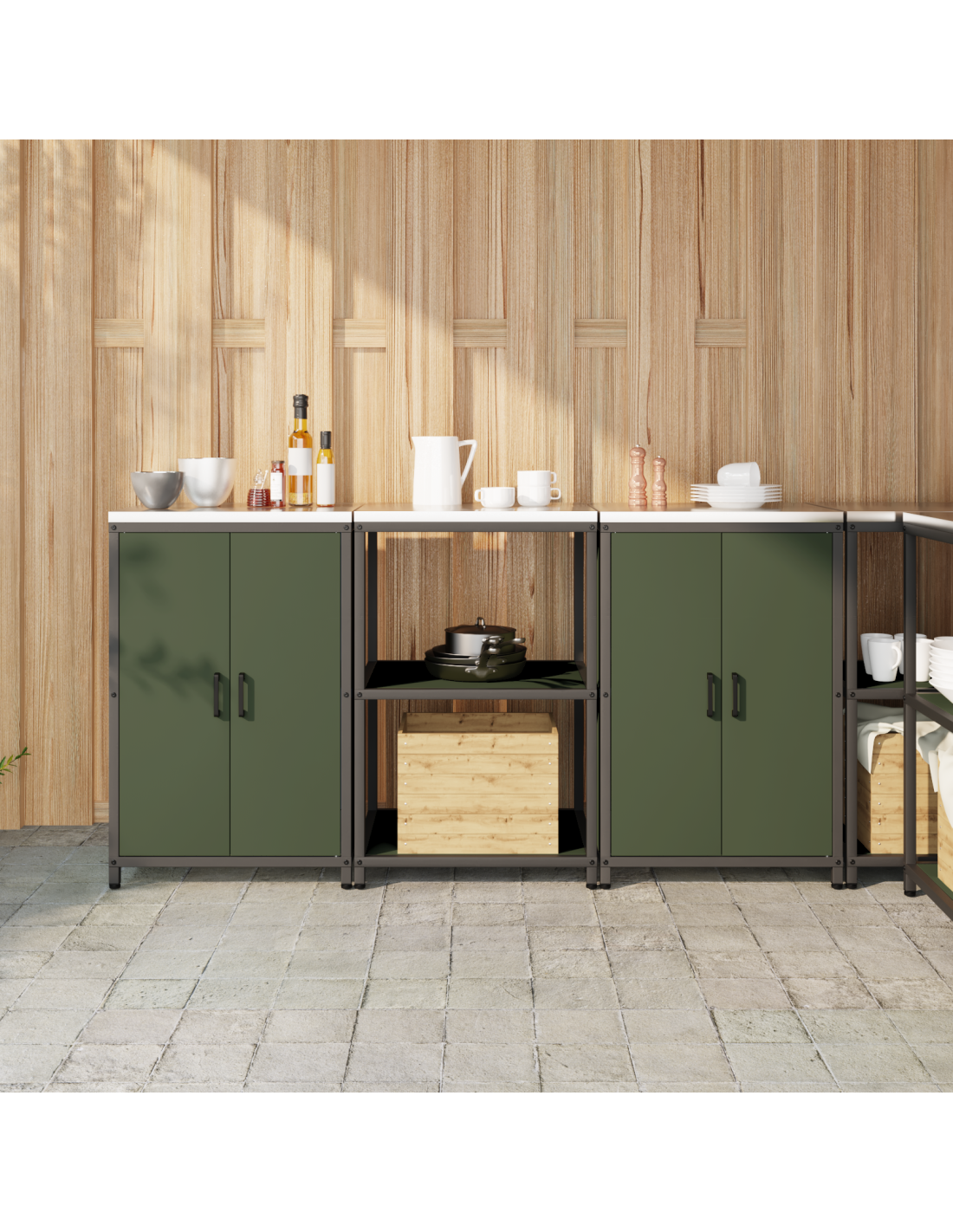 Questa unità di stoccaggio da cucina industriale è una combinazione di design semplice e funzionalità, ideale per chi ama sia l'estetica che la praticità. Il suo robusto telaio in acciaio le dà un aspetto elegante e industriale, perfetto per cucine moderne. Combina perfettamente stoccaggio e stile, rendendola un’aggiunta di valore per qualsiasi cucina.