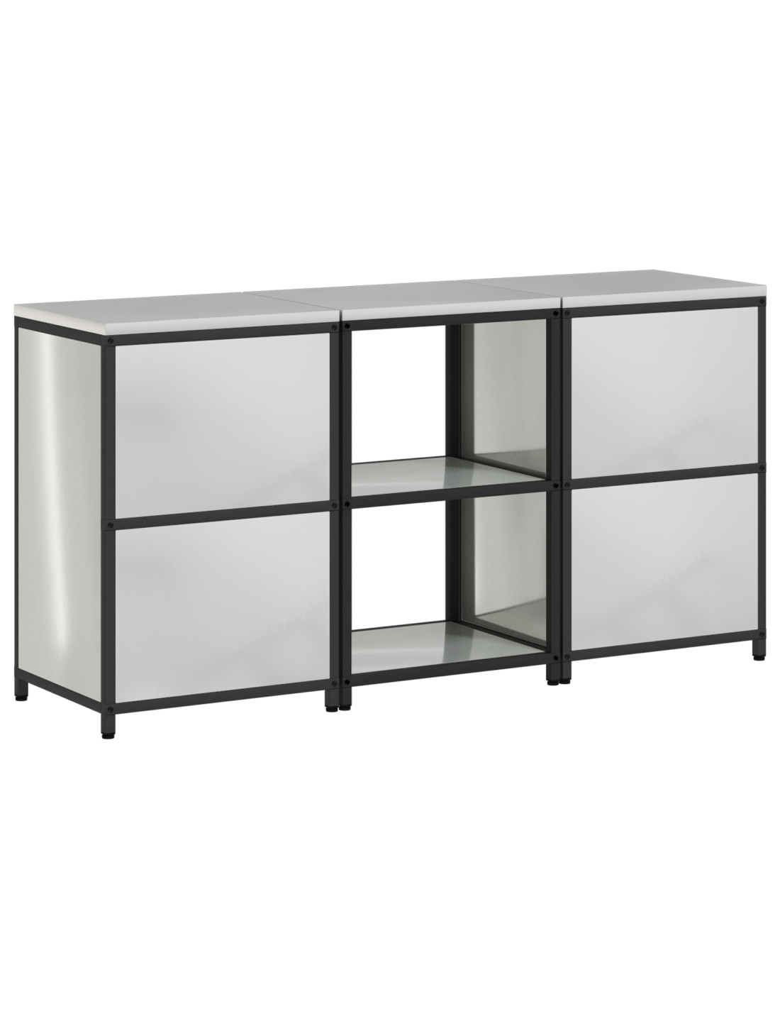 Questa unità di stoccaggio da cucina industriale è una combinazione di design semplice e funzionalità, ideale per chi ama sia l'estetica che la praticità. Il suo robusto telaio in acciaio le dà un aspetto elegante e industriale, perfetto per cucine moderne. Combina perfettamente stoccaggio e stile, rendendola un’aggiunta di valore per qualsiasi cucina.