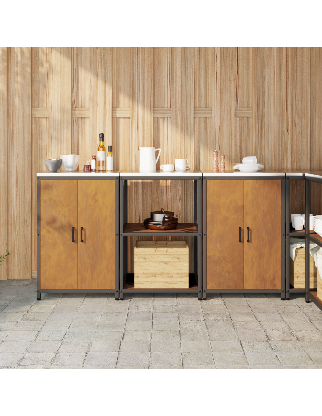 Questa unità di stoccaggio da cucina industriale è una combinazione di design semplice e funzionalità, ideale per chi ama sia l'estetica che la praticità. Il suo robusto telaio in acciaio le dà un aspetto elegante e industriale, perfetto per cucine moderne. Combina perfettamente stoccaggio e stile, rendendola un’aggiunta di valore per qualsiasi cucina.