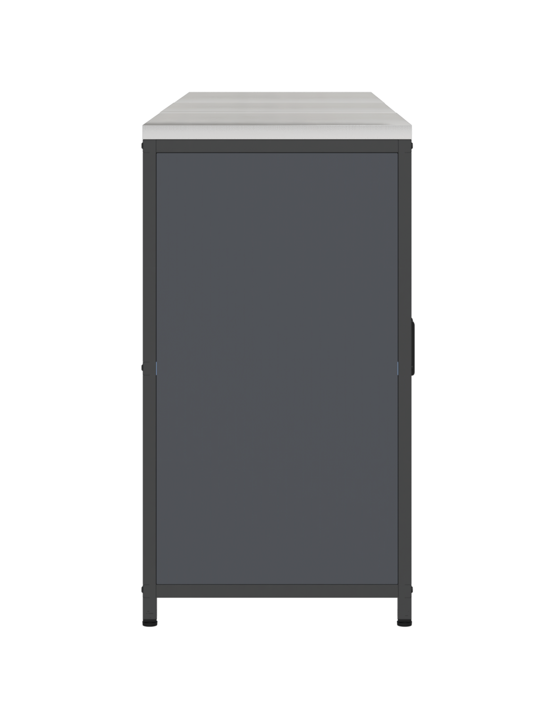 - Materiali: Questo armadietto in stile industriale è fatto principalmente di acciaio di alta qualità, garantendo una struttura resistente per l'uso quotidiano. Questo tipo di materiale aggiunge longevità e stabilità, mentre la finitura moderna offre una nota di eleganza che si adatta a case contemporanee.