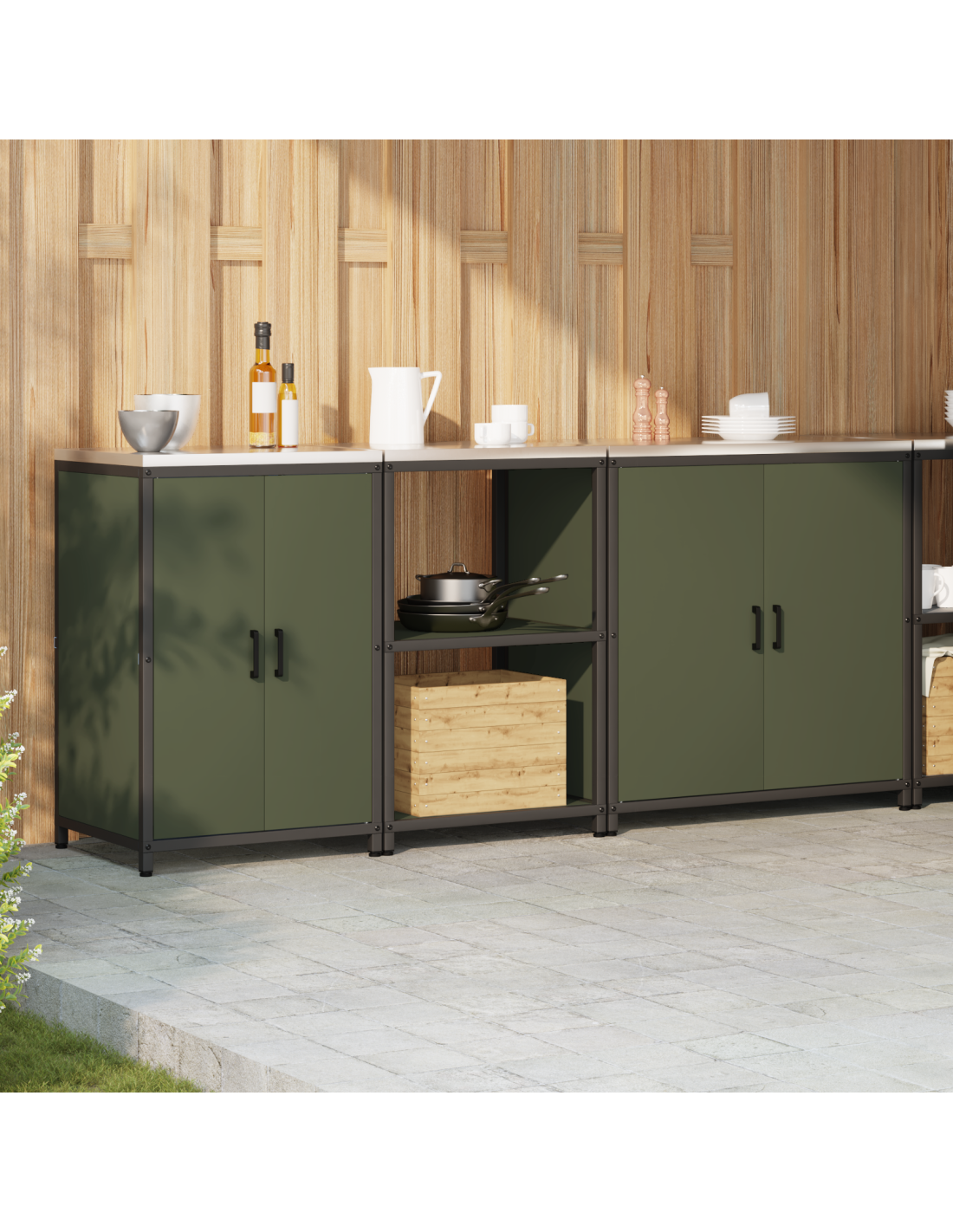 - Utilizzi raccomandati: Ottimo per cucine moderne, questo armadietto offre ampio spazio di stoccaggio per mantenere in ordine gli oggetti essenziali. Si integra benissimo in una cucina domestica o in uno spazio professionale, garantendo una soluzione di stoccaggio sicura e bella.