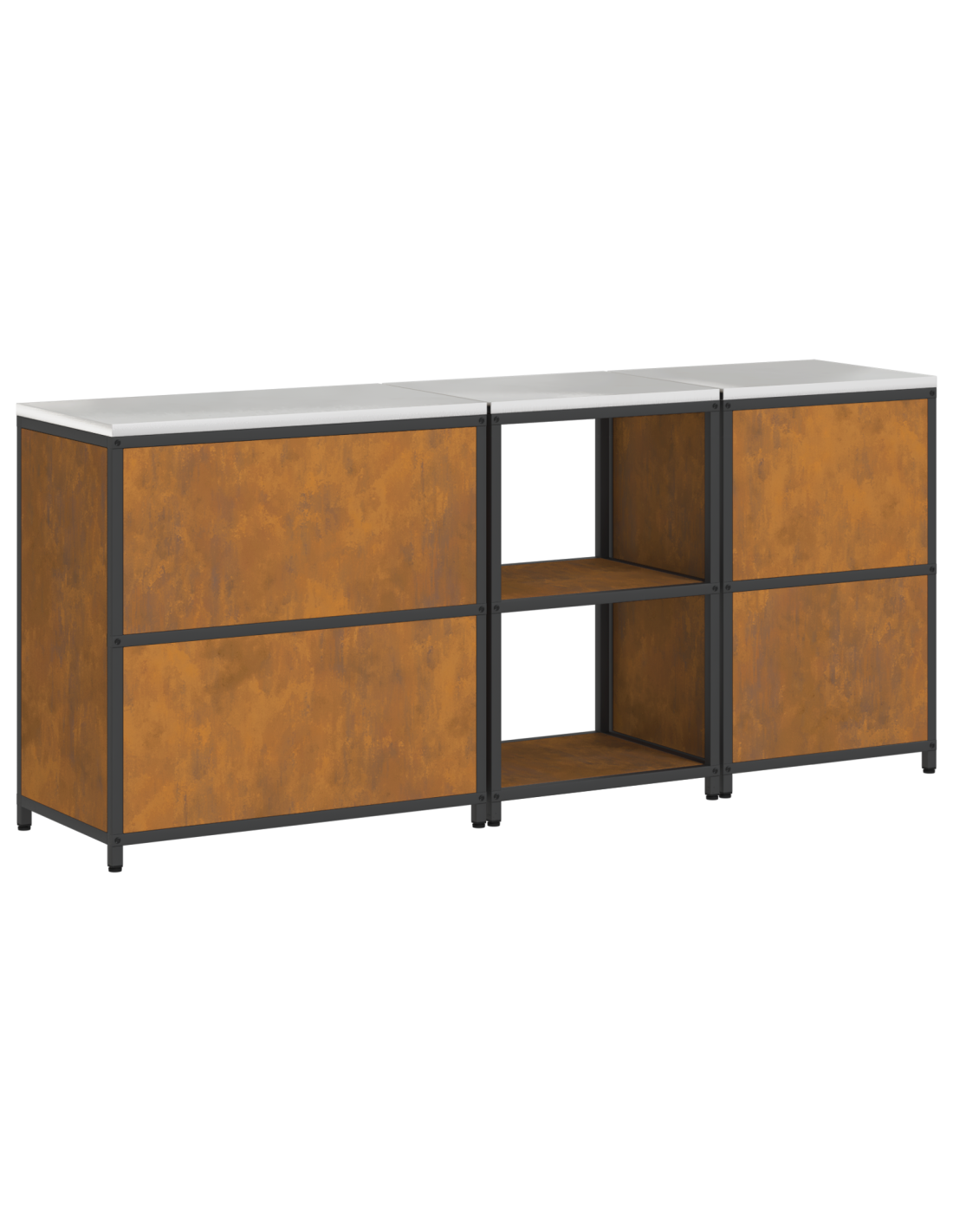 - Materiali: Questo armadietto in stile industriale è fatto principalmente di acciaio di alta qualità, garantendo una struttura resistente per l'uso quotidiano. Questo tipo di materiale aggiunge longevità e stabilità, mentre la finitura moderna offre una nota di eleganza che si adatta a case contemporanee.