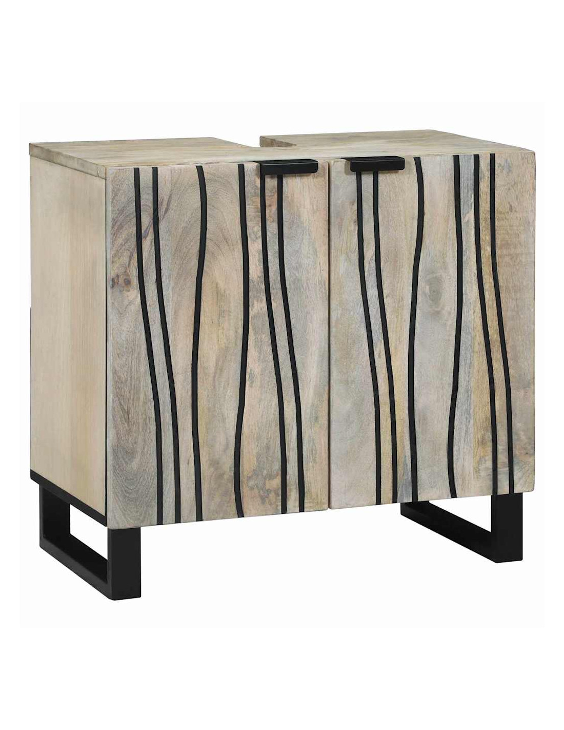 Questo armadietto da lavabo è la soluzione perfetta per il tuo bagno moderno. Con il suo design elegante e minimalista, offre praticità e stile, adattandosi senza sforzo a qualsiasi arredamento. Realizzato in legno ingegnerizzato con gambe in ferro, assicura stabilità e durata. La finitura testurizzata nera aggiunge un tocco di classe, facendone un punto focale nella stanza.