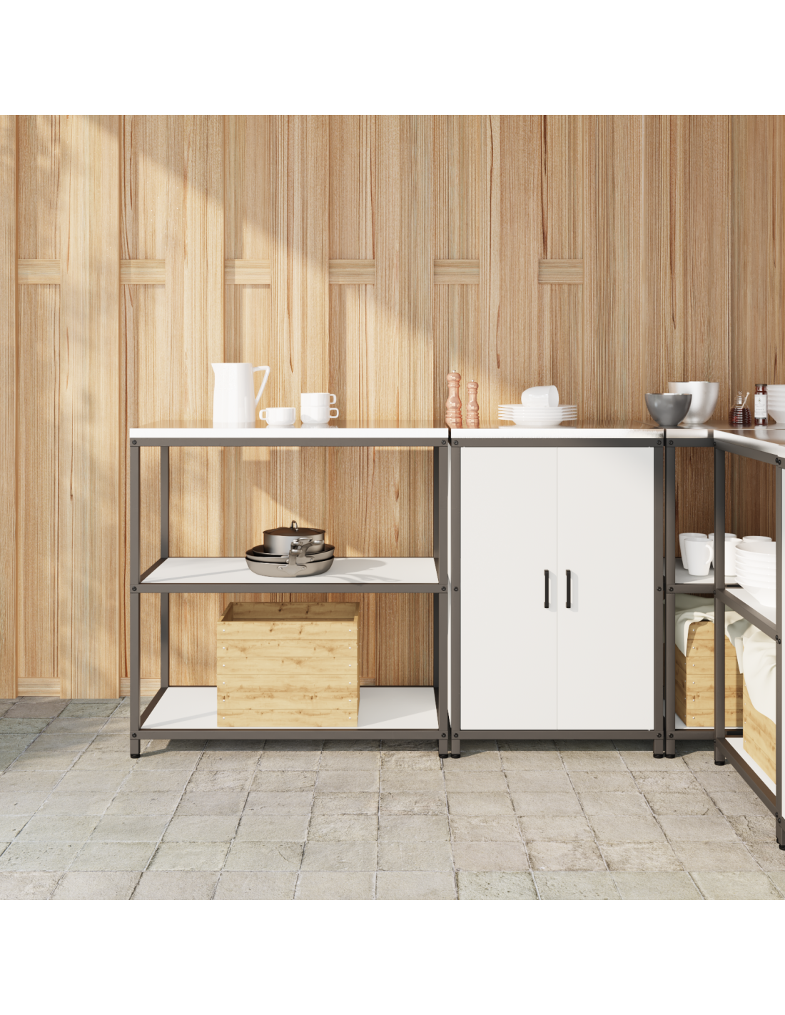 - Soluzioni di stoccaggio spaziose: Il mobile offre ampio spazio per riporre tutto il necessario, con scaffali e comparti pensati per tenere in ordine gli accessori da cucina. È un'ottima soluzione per chi desidera un ambiente senza disordine, favorendo ordine e accessibilità.