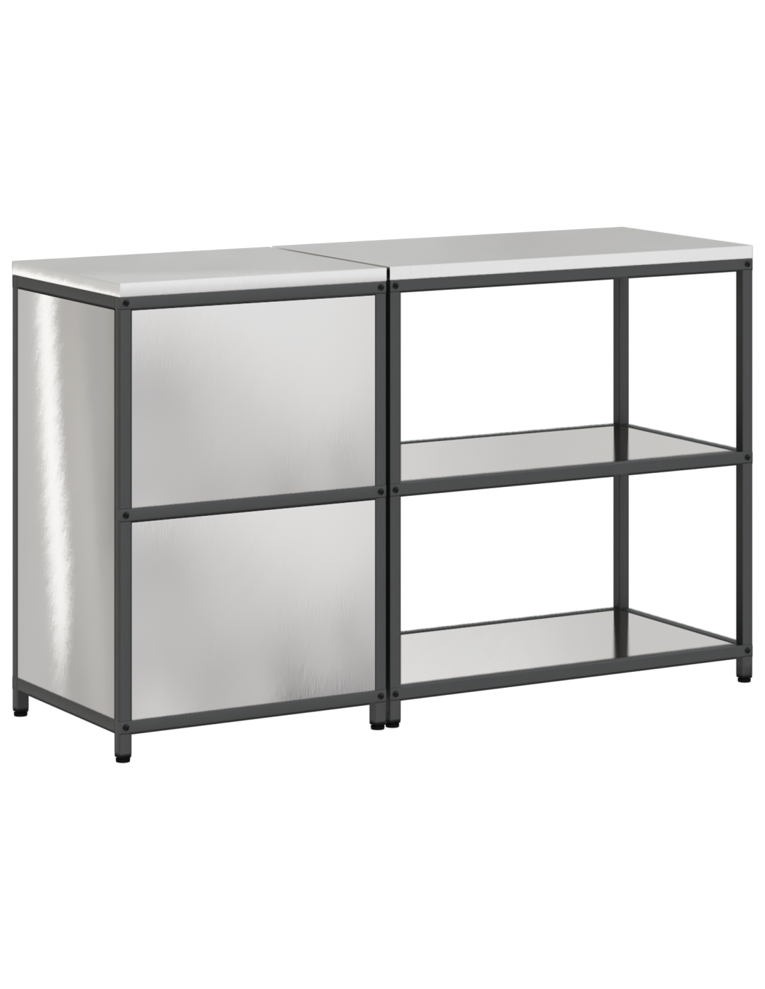 - Facile manutenzione: Tenere il mobile pulito non è difficile: basta un panno umido per mantenere le superfici brillanti e senza polvere. La robustezza dell'acciaio assicura durata nel tempo, rendendolo una soluzione di stoccaggio efficace.