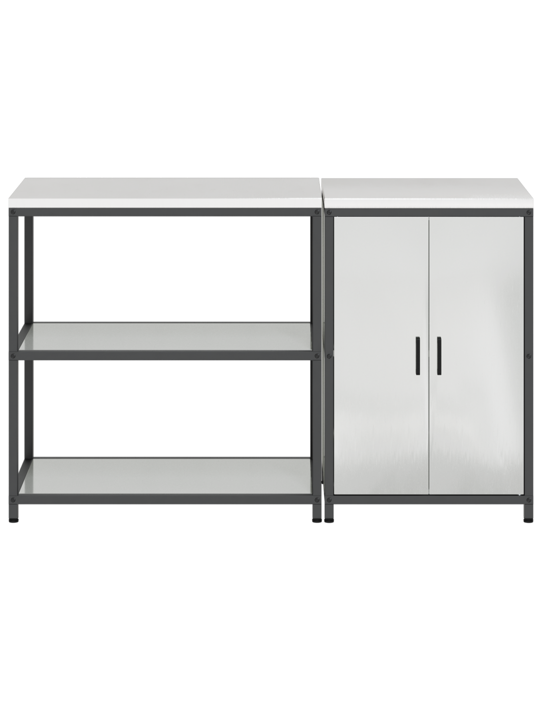 - Facile manutenzione: Tenere il mobile pulito non è difficile: basta un panno umido per mantenere le superfici brillanti e senza polvere. La robustezza dell'acciaio assicura durata nel tempo, rendendolo una soluzione di stoccaggio efficace.