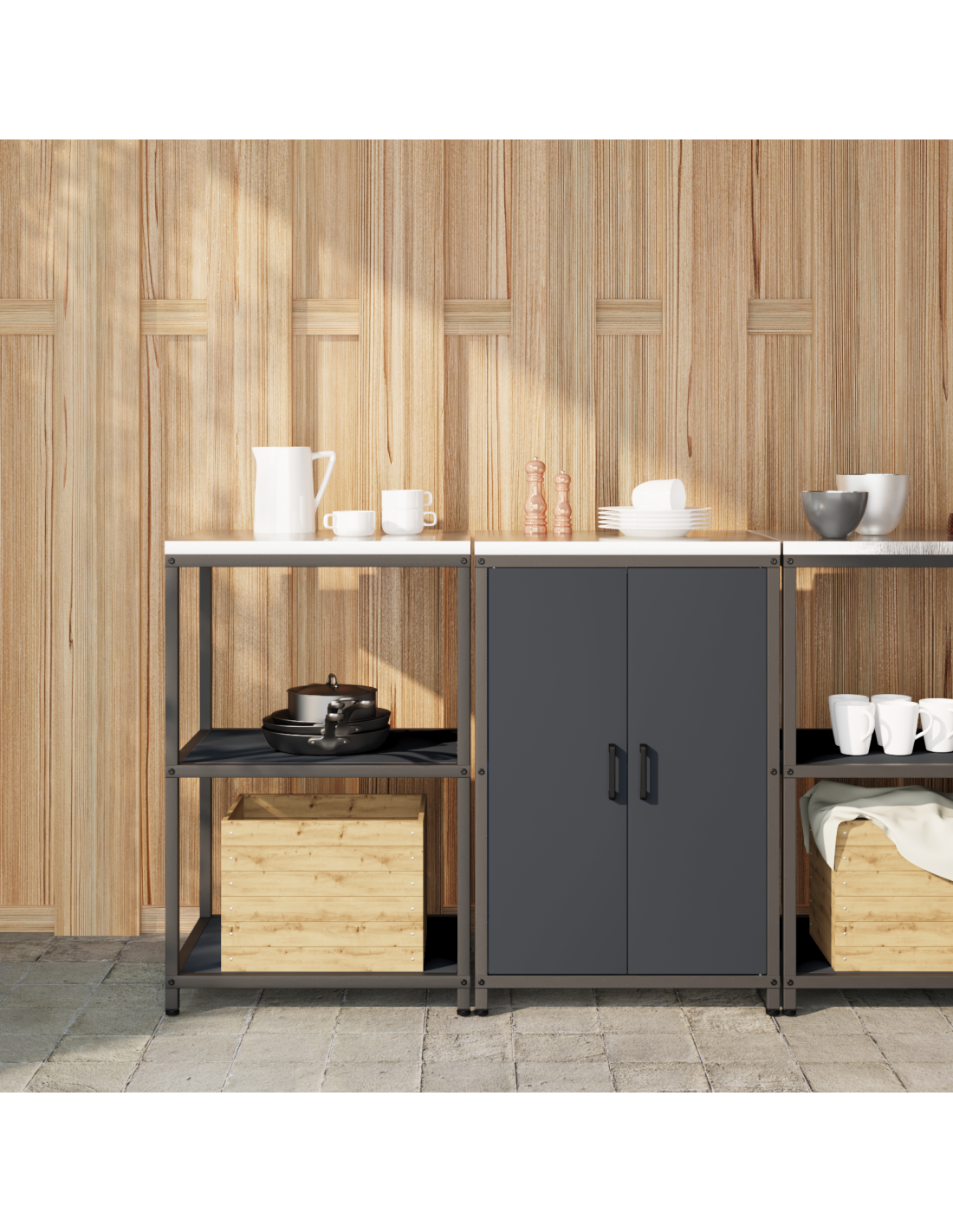 - Soluzioni di stoccaggio spaziose: Il mobile offre ampio spazio per riporre tutto il necessario, con scaffali e comparti pensati per tenere in ordine gli accessori da cucina. È un'ottima soluzione per chi desidera un ambiente senza disordine, favorendo ordine e accessibilità.