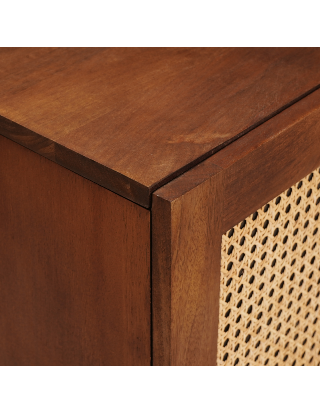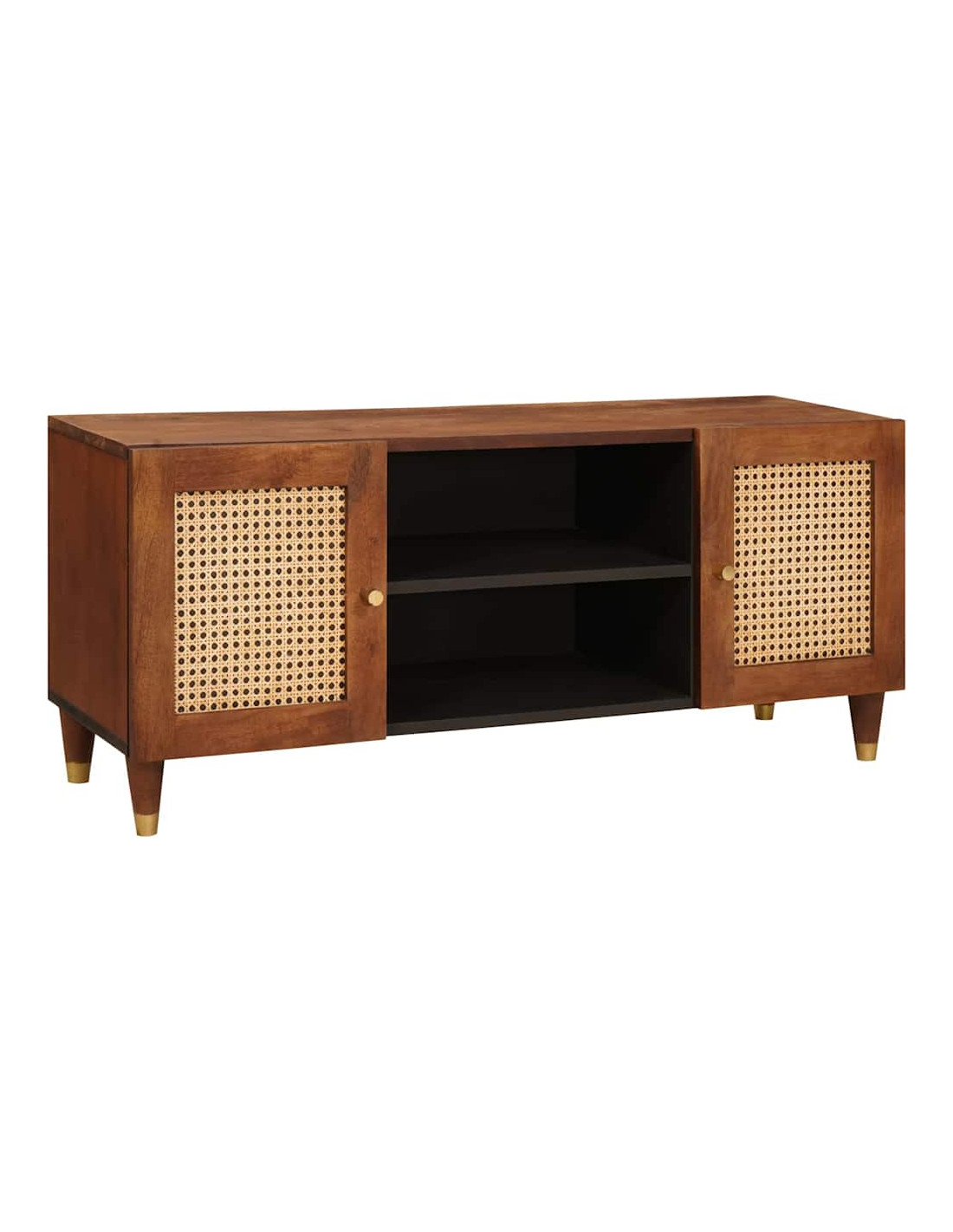- Legno di mango resistente: Realizzato in legno massiccio di mango robusto, questo mobile TV è fatto per durare e resistere all'uso quotidiano. La venatura naturale e i colori caldi portano una sensazione accogliente, combinando fascino e funzionalità.