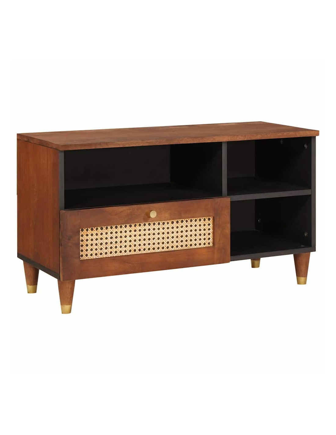Questo mobile TV rettangolare in legno massello di mango porta un tocco di modernità al tuo spazio. Con la sua finitura marrone elegante, si integra perfettamente in qualsiasi tipo di arredamento, offrendo sia stile sia funzionalità. Con dimensioni di 80 x 33,5 x 46 cm, è una soluzione di stoccaggio compatta e spaziosa per i tuoi media e per il tuo intrattenimento. Le linee pulite e il design minimalista creano un'atmosfera serena, rendendolo un'aggiunta perfetta a ogni interno, sia che si tratti di un appartamento accogliente o di una grande casa.