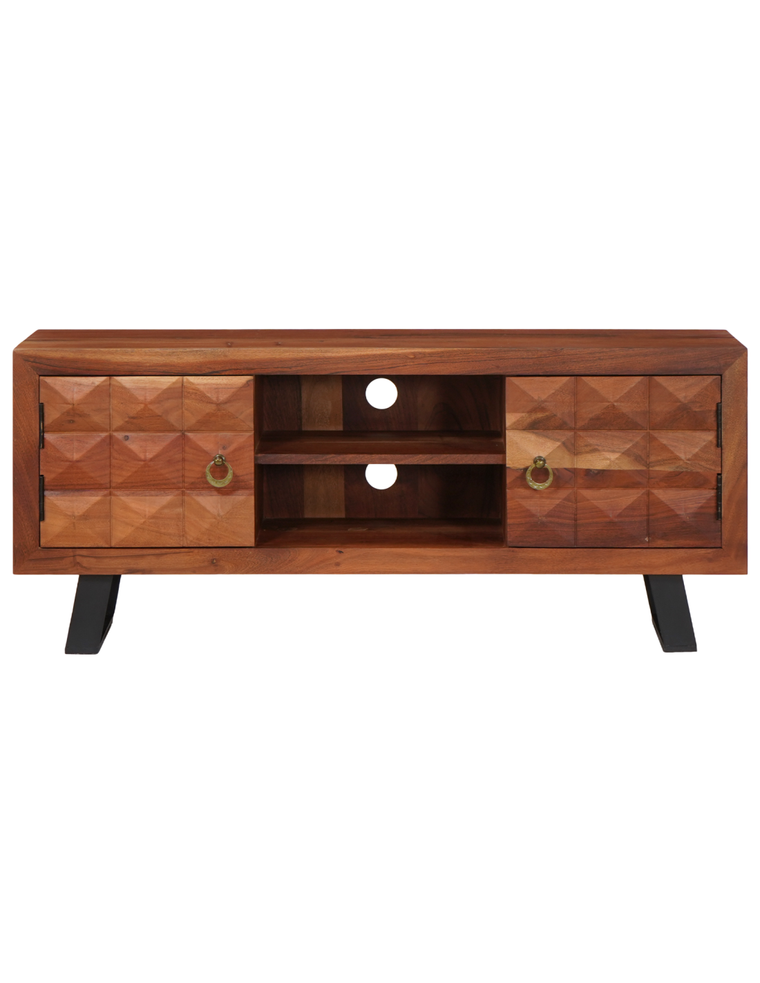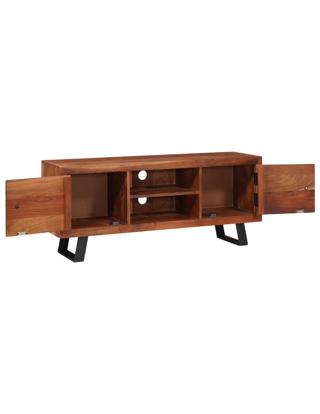 - Legno massello di acacia: Questo mobile TV è fatto in legno massello di acacia, un materiale robusto e durevole. La tonalità e la venatura naturale donano calore alla tua stanza. La resistenza dell'acacia lo rende una scelta solida per l'archiviazione dei media.