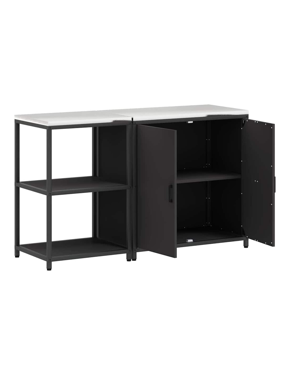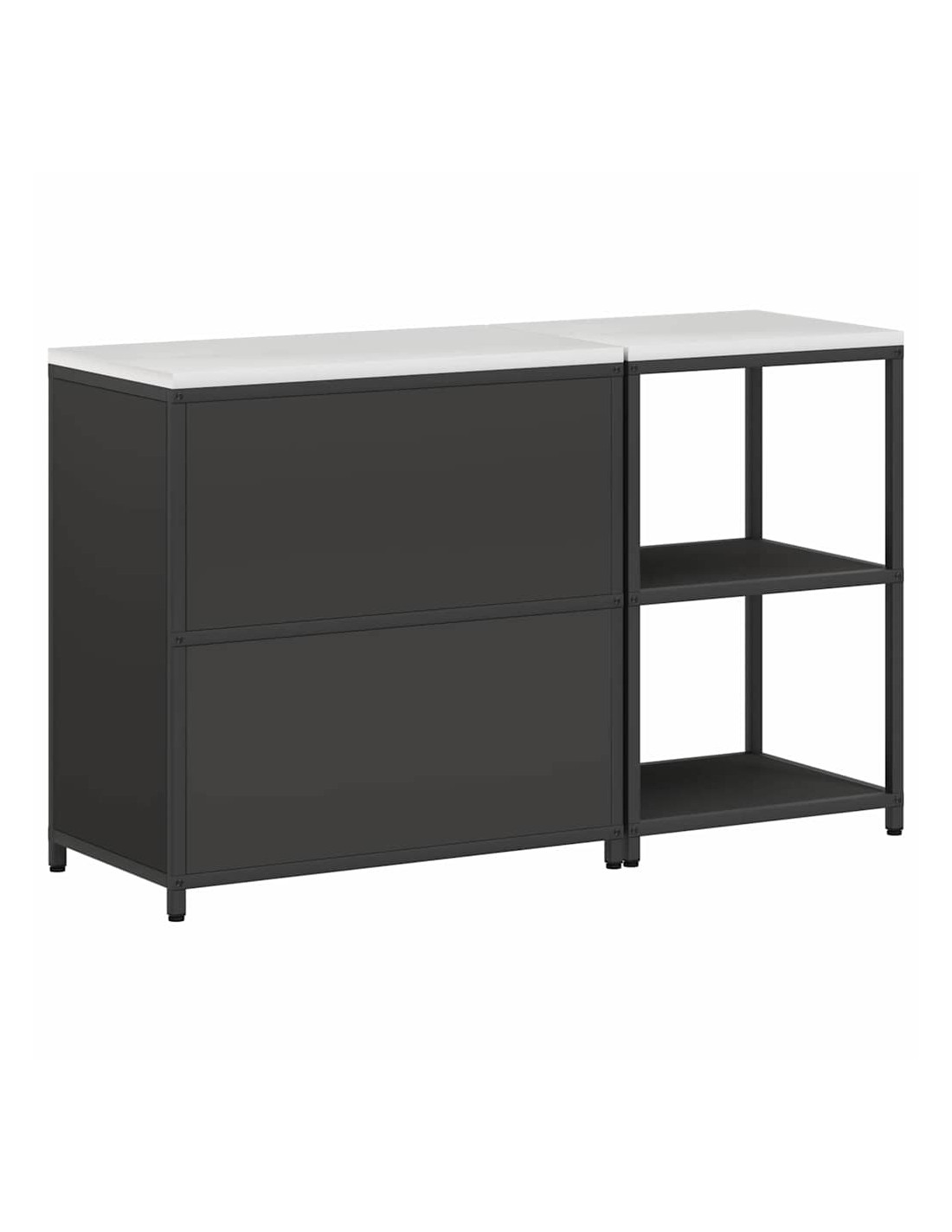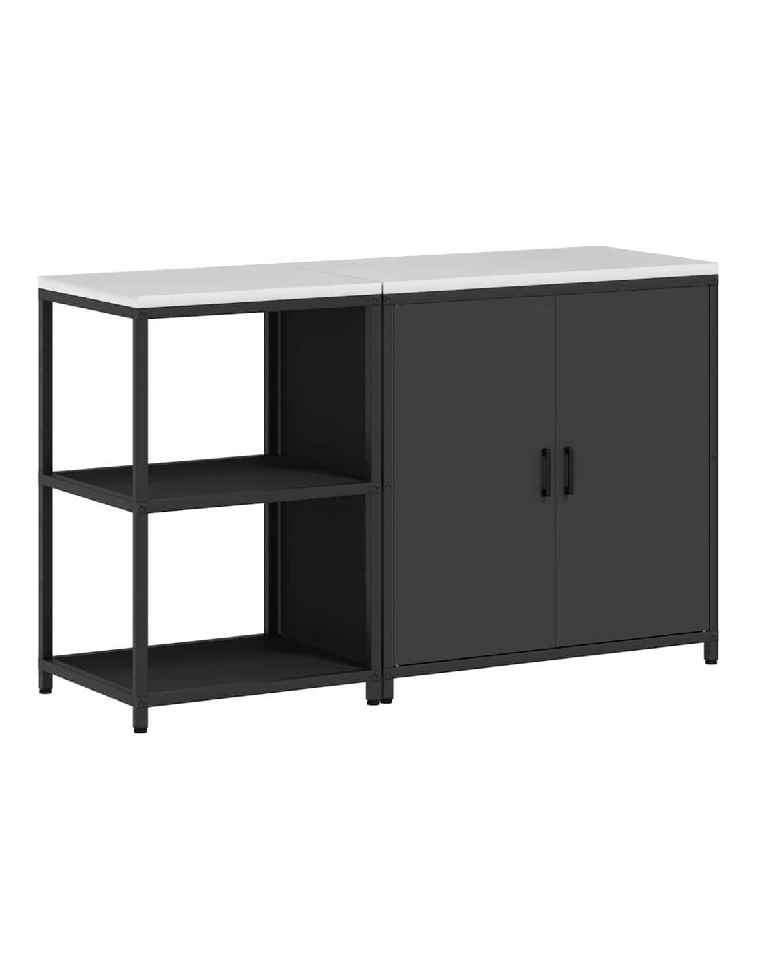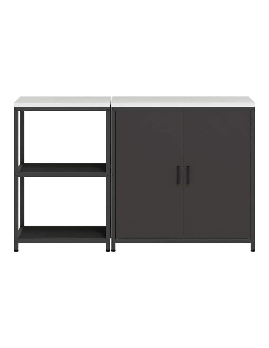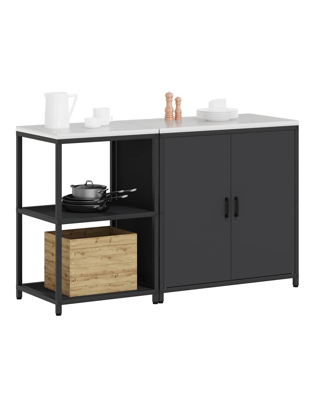 - Componenti inclusi: Ogni elemento di questa unità ha una funzione pratica. Dotata di porte e mensole in acciaio, offre longevità e un facile accesso a tutto ciò che contiene. Le maniglie e le gambe nere mantengono un aspetto armonioso, rendendola ancora più elegante. Il design rettangolare ottimizza lo spazio, rendendo la cucina più funzionale.