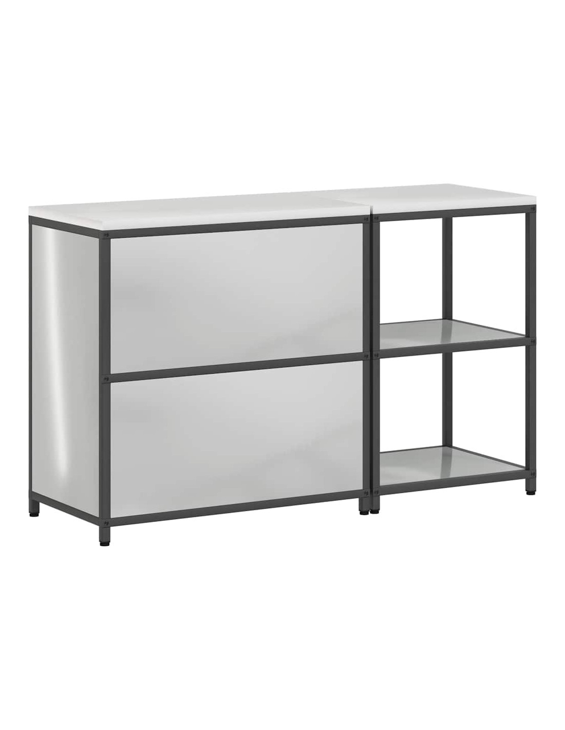 - Manutenzione: Per mantenerla in ottime condizioni, basta pulirla con un panno asciutto per rimuovere la polvere. È meglio evitare prodotti chimici aggressivi per non danneggiare la finitura. Con una buona manutenzione, questa unità in acciaio rimarrà un'ottima soluzione di stoccaggio per anni.