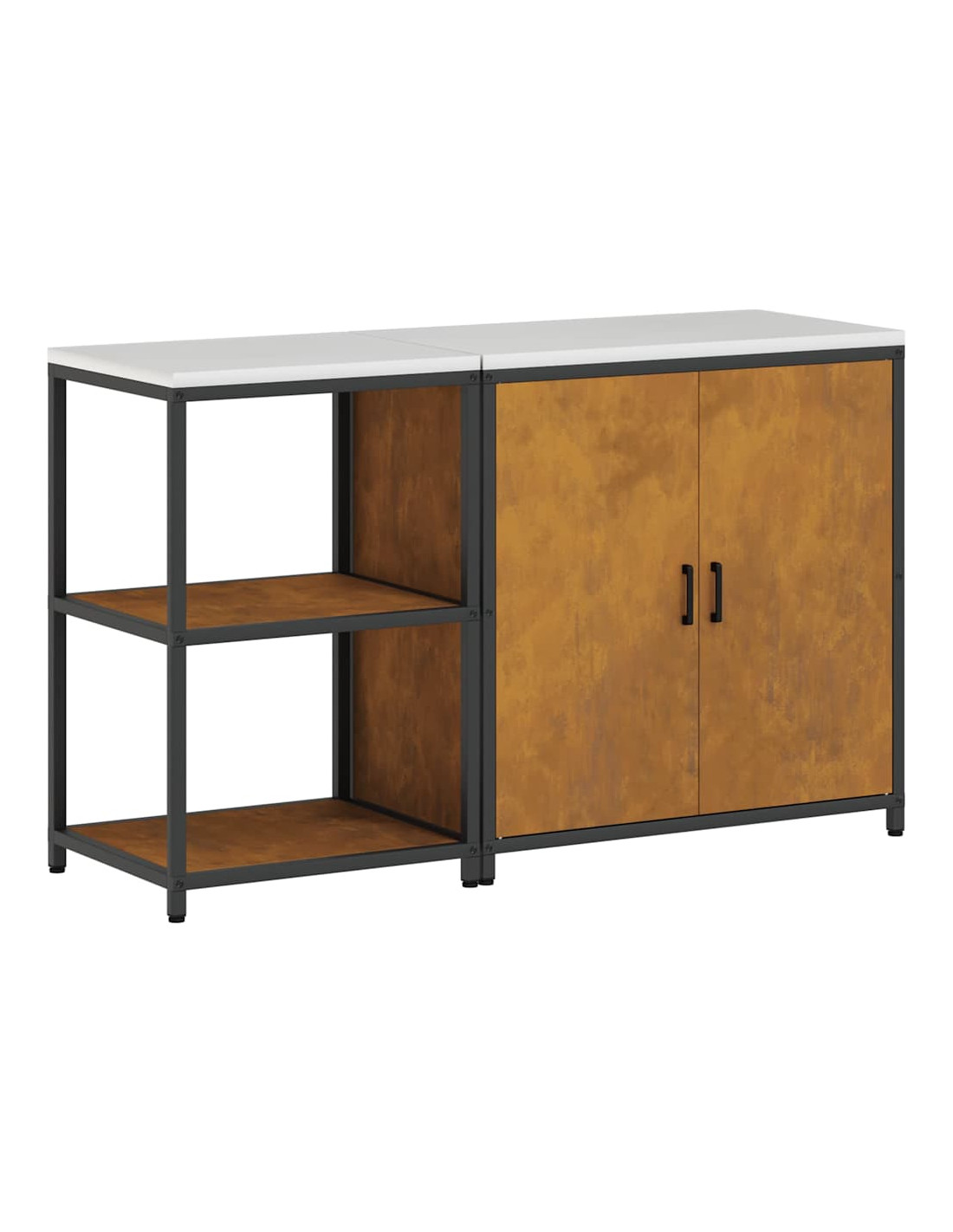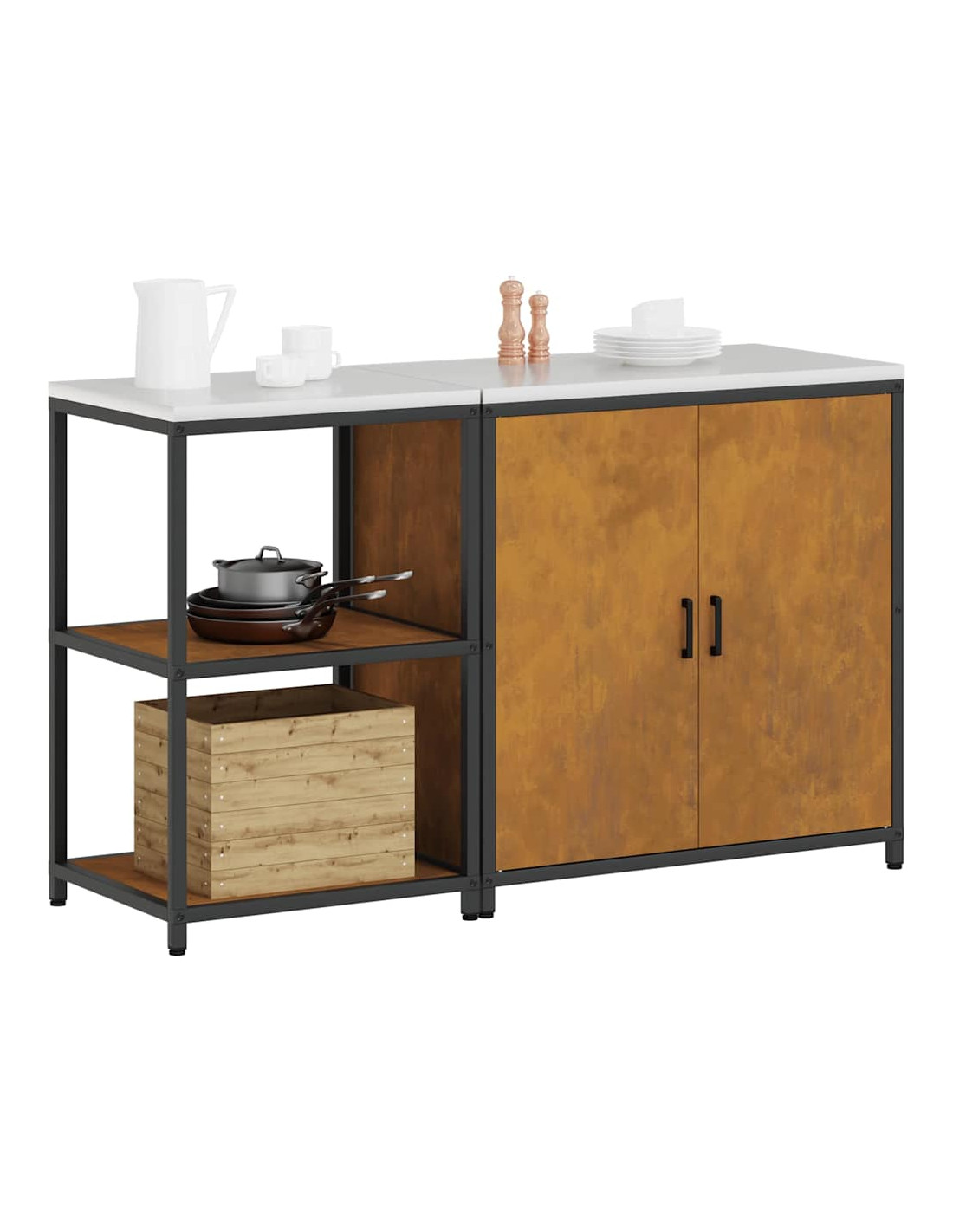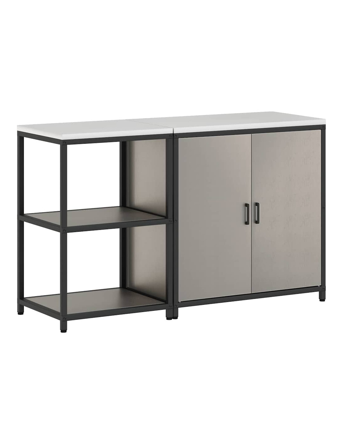 - Componenti inclusi: Ogni elemento di questa unità ha una funzione pratica. Dotata di porte e mensole in acciaio, offre longevità e un facile accesso a tutto ciò che contiene. Le maniglie e le gambe nere mantengono un aspetto armonioso, rendendola ancora più elegante. Il design rettangolare ottimizza lo spazio, rendendo la cucina più funzionale.