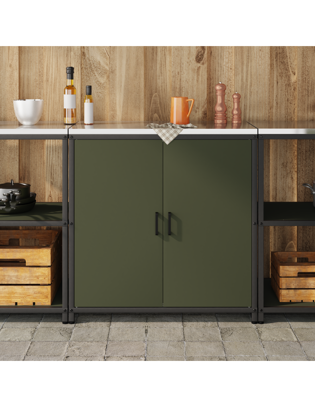 - Ripiani Versatili Con diversi ripiani, questa unità ti offre tanto spazio per riporre tutto, da cibo a utensili. I ripiani possono sostenere materiali come MDF e offrono un'opzione comoda e flessibile per mantenere la tua cucina organizzata.