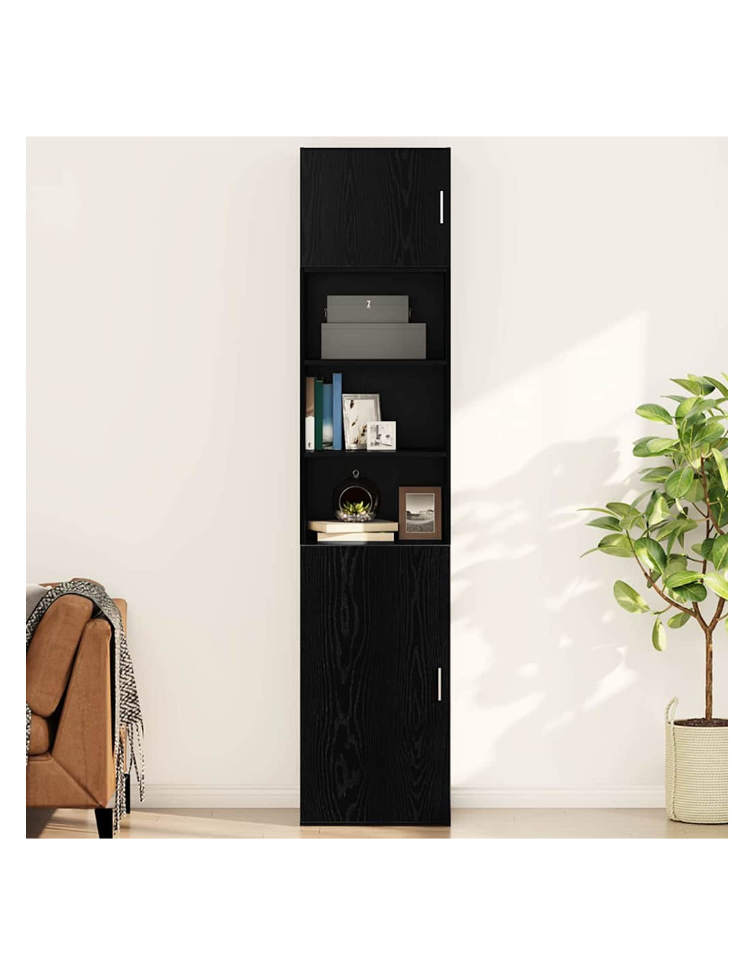 - Tanto spazio di archiviazione: Questo armadio ti da un sacco di spazio per ogni cosa, dai libri ai soprammobili, così tutto ha il suo posto.