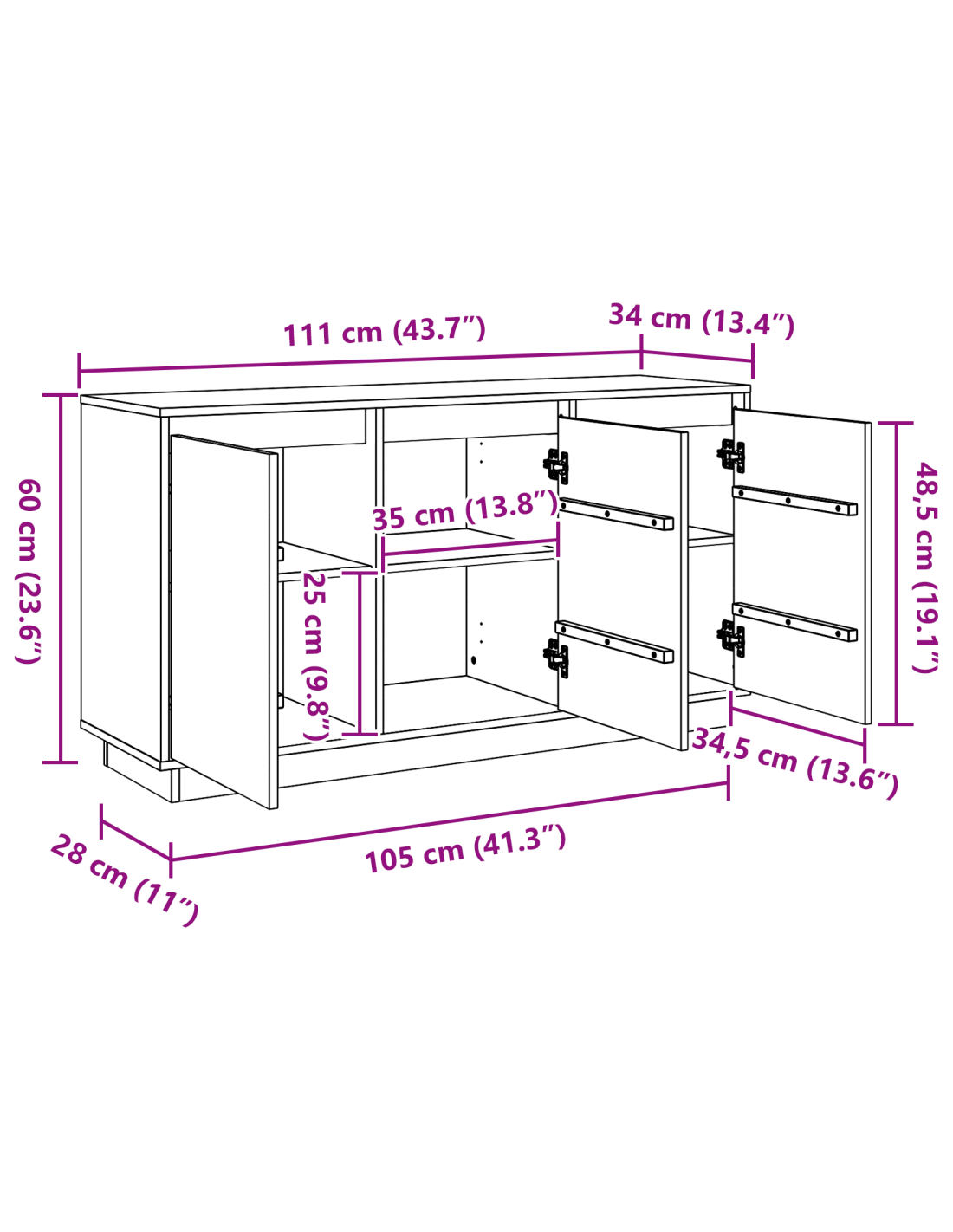 - Spazio Generoso: Con dimensioni di 111 x 34 x 60 cm, offre ampi compartimenti interni. La superficie è ideale per sistemare stoviglie o oggetti decorativi, rendendola molto versatile per l'organizzazione.