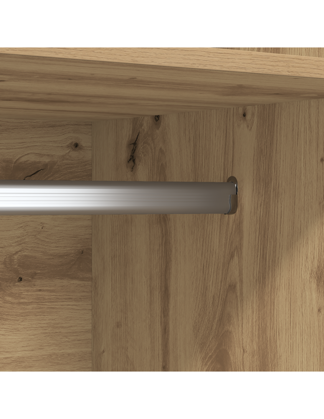 - Legno ingegnerizzato Questo armadio è realizzato con legno ingegnerizzato, dandogli un look sofisticato e resistente. È fatto per resistere ai cambiamenti di temperatura e alle condizioni domestiche, quindi durerà nel tempo.